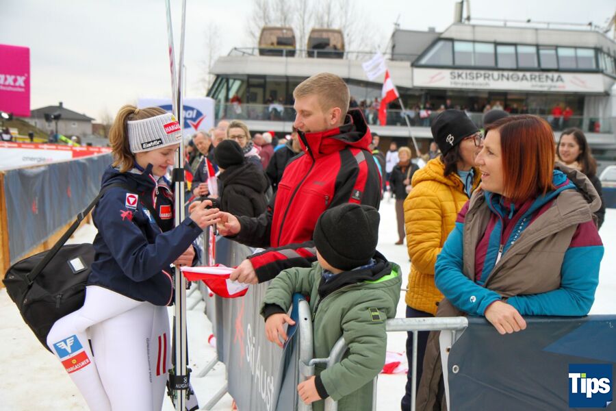 Am zweiten Bewerbstag konnten die Ski Austria-Springerinnen dann noch eines draufsetzen. Kothbauer schaffte auch bei ihrem erst vierten Weltcup-Auftritt die Qualifikation und verbesserte sich von Rang 39 auf 37. Die Innviertlerin Julia Mühlbacher lag am Tag zwei nach dem ersten Durchgang auf Rang 6 und beendete den Bewerb schließlich auf Platz 9. Die Salzburgerin Lisa Eder die aktuell im Gesamtweltcup auf Platz 3 liegt durfte am zweiten Tag beim Heimweltcup ihren zweiten Weltcupsieg vor der Doppelolympiasiegerin Anna Odine Stroem feiern. Ein Bus voller Fans war extra aus ihrer Heimat Leogang angereist, machte mit dem "Lisa Eder-Lied" ordentlich Stimmung und der Fanclub trug seine Lisa zum ersten Heimsieg.