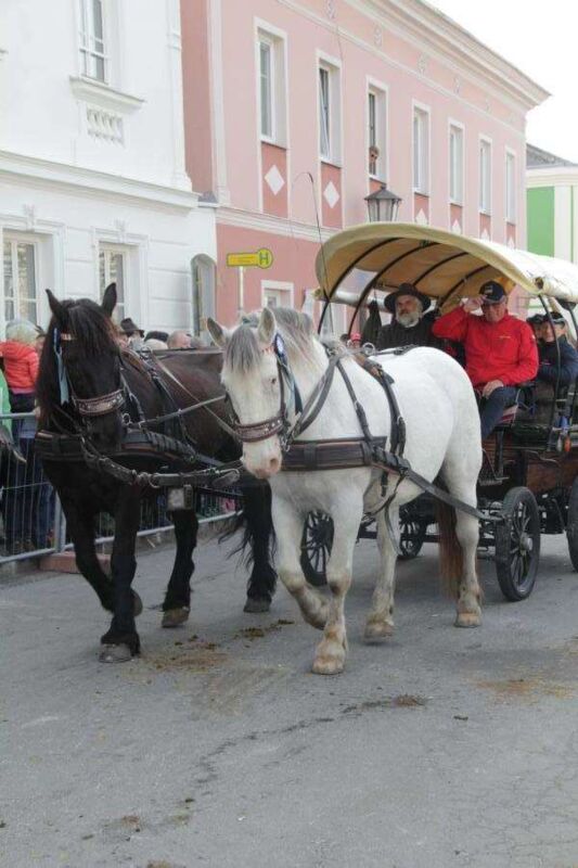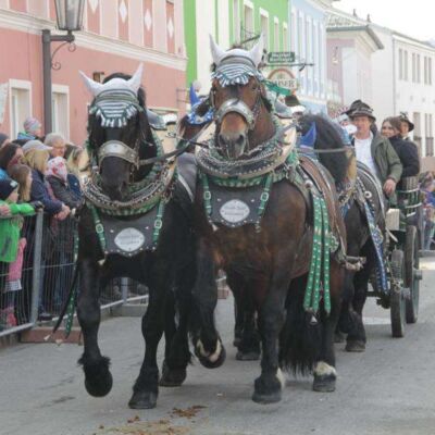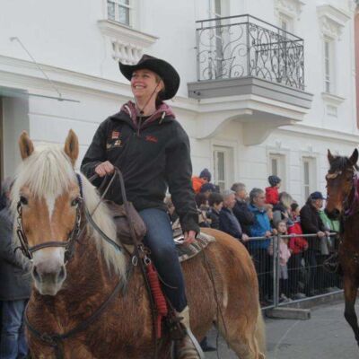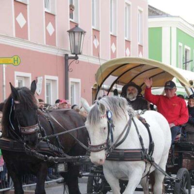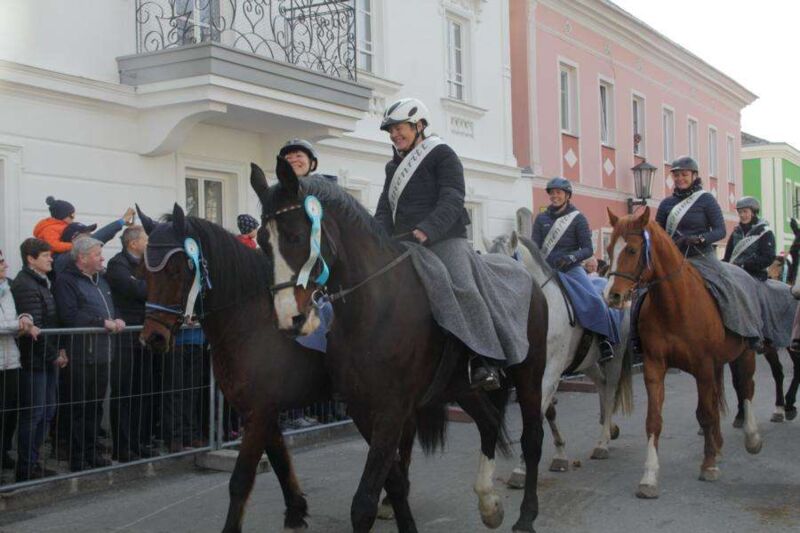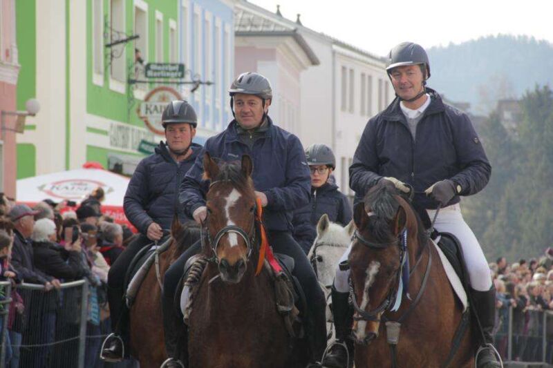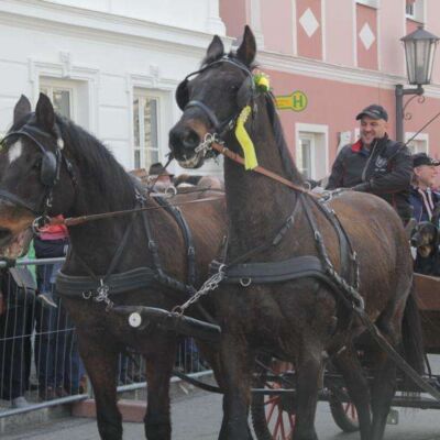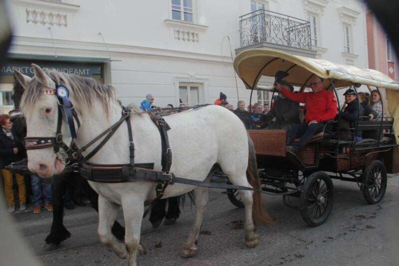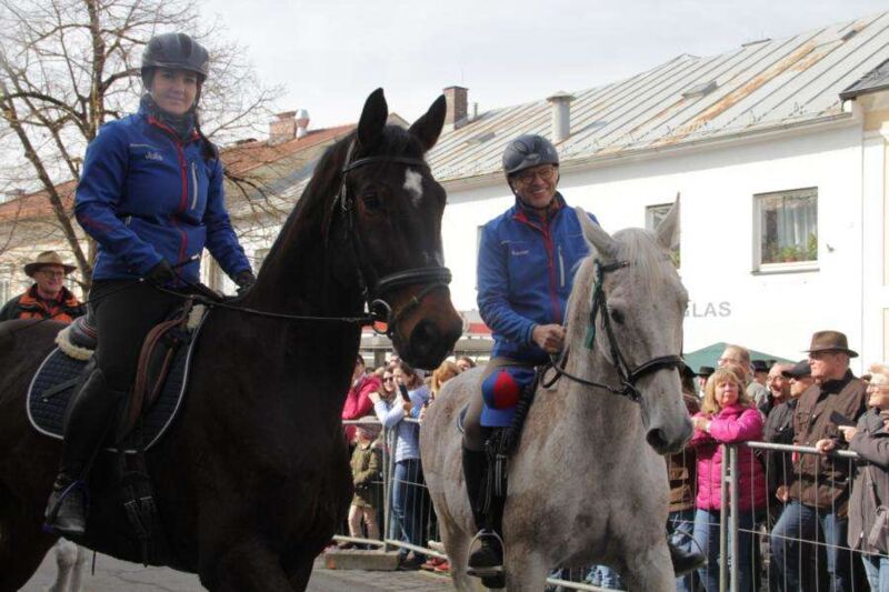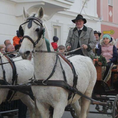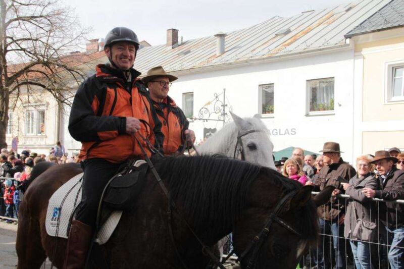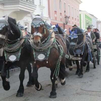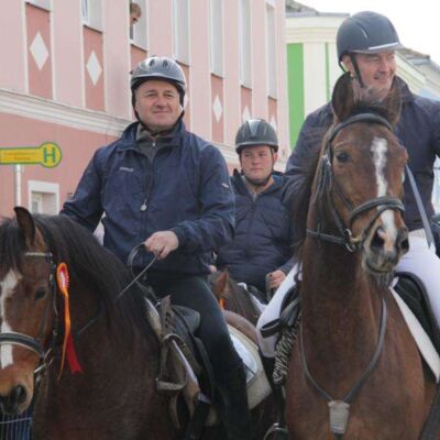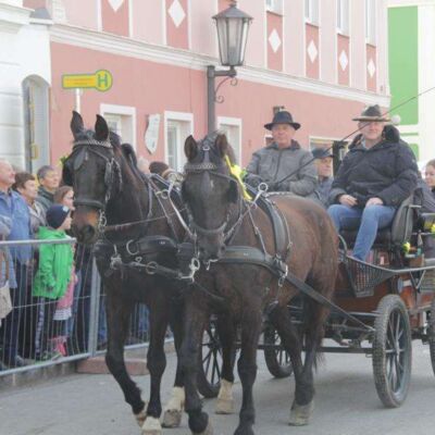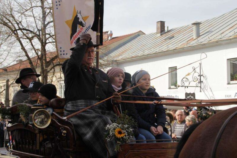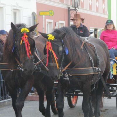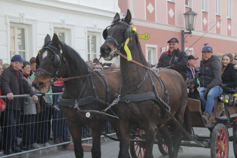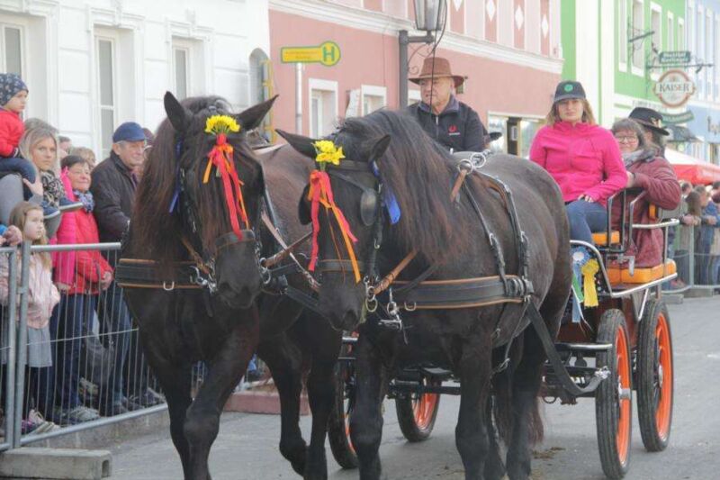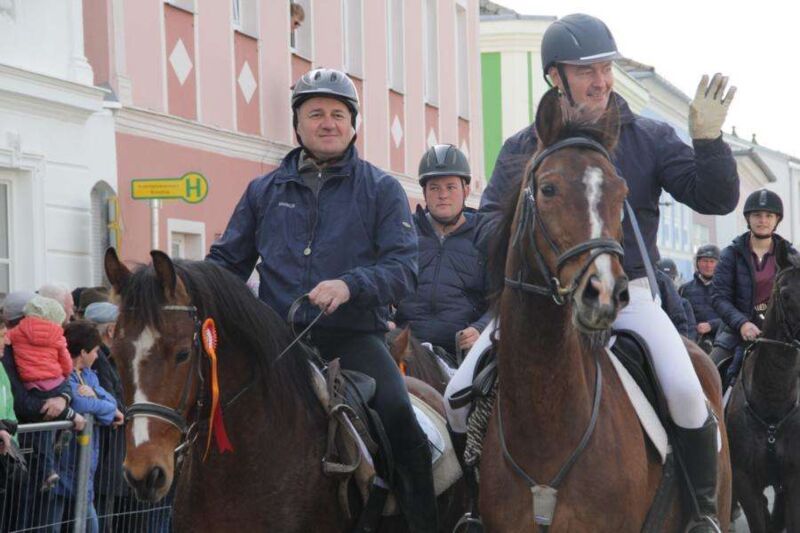 KÖNIGSWIESEN. Rundum gelungen - so kann man den 30. Jubiläums-Josefimarkt in der Mühlviertler Alm-Gemeinde Königswiesen zusammenfassen. Nach dem Bierwagen-Geschicklichkeitsfahren am Samstag stand der Sonntag, der eigentliche Josefi-Tag, ganz im Zeichen des traditionellen Programms. Nach dem Gottesdienst zu Ehren des Hl. Josef folgte der Einzug der Reiter und Fahrer. Dem schönen Wetter und dem Jubiläum war es geschuldet, dass sagenhafte 155 Pferde, unter dem Sattel und im Gespann, heuer unter dem tosenden Applaus der tausenden Zuschauer auf dem Königswiesener Marktplatz einzogen. Auch Wirtschaftlandesrat Markus Achleitner ließ sich dieses farbenprächtige Spektakel nicht entgehen.