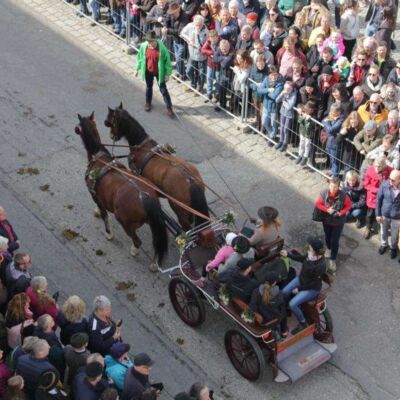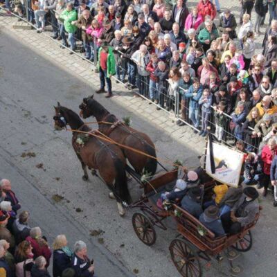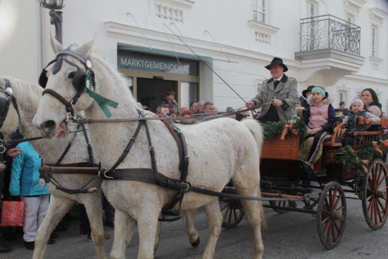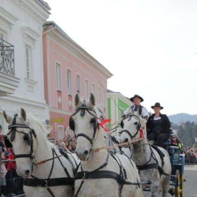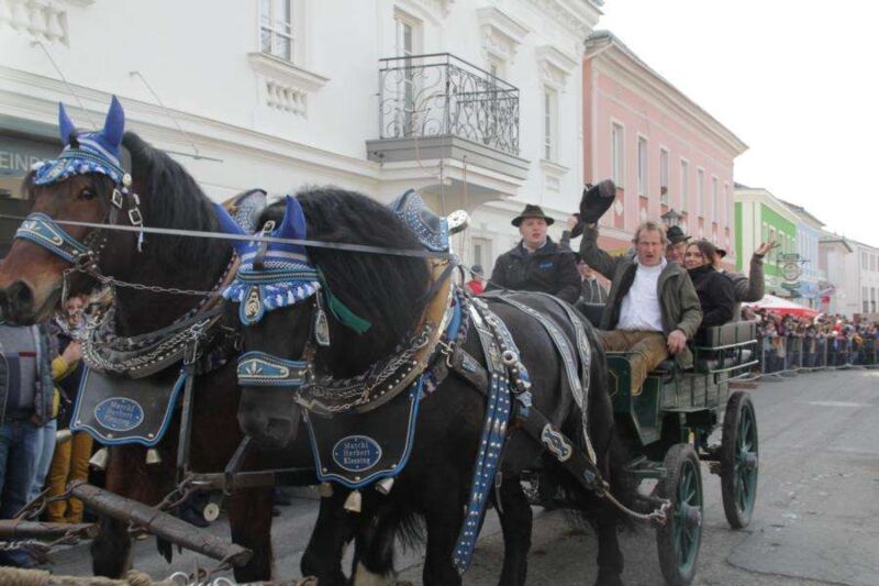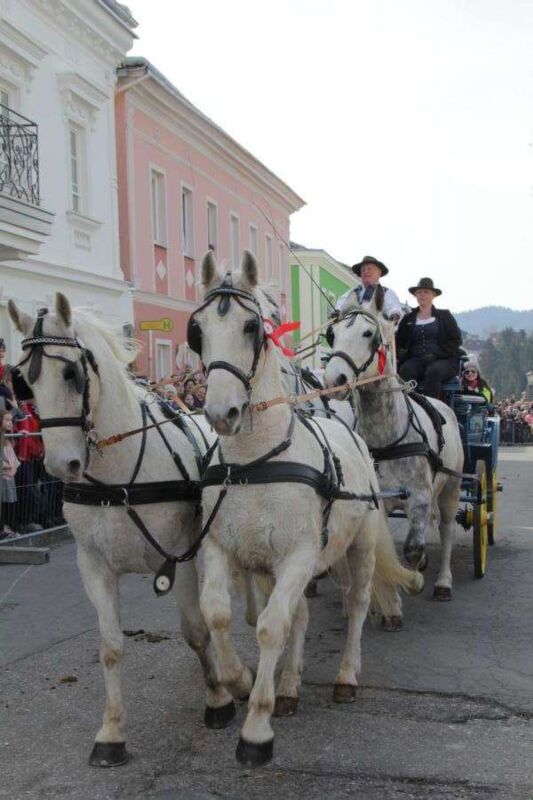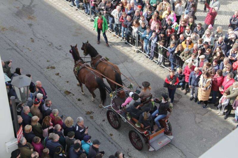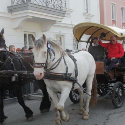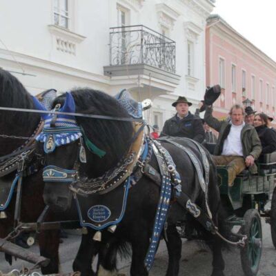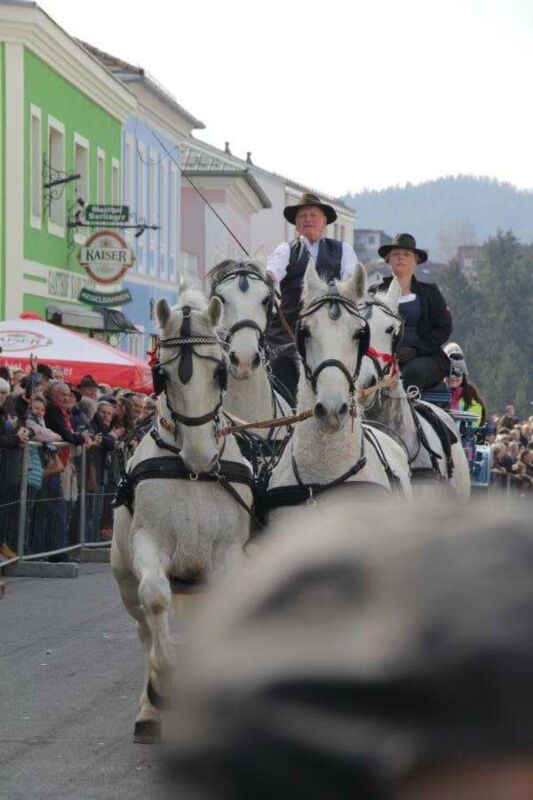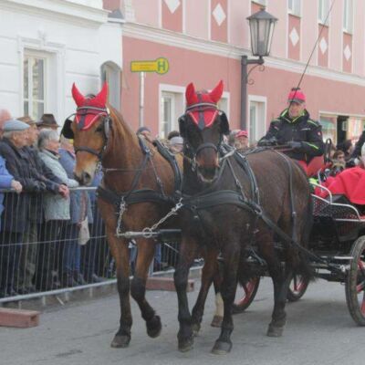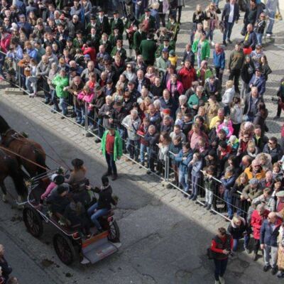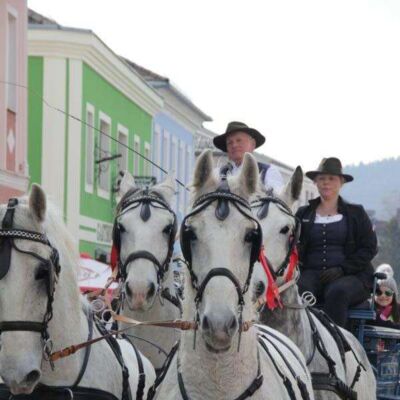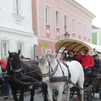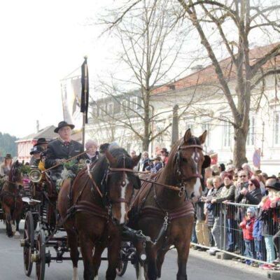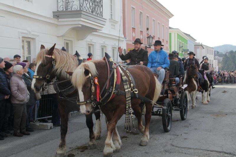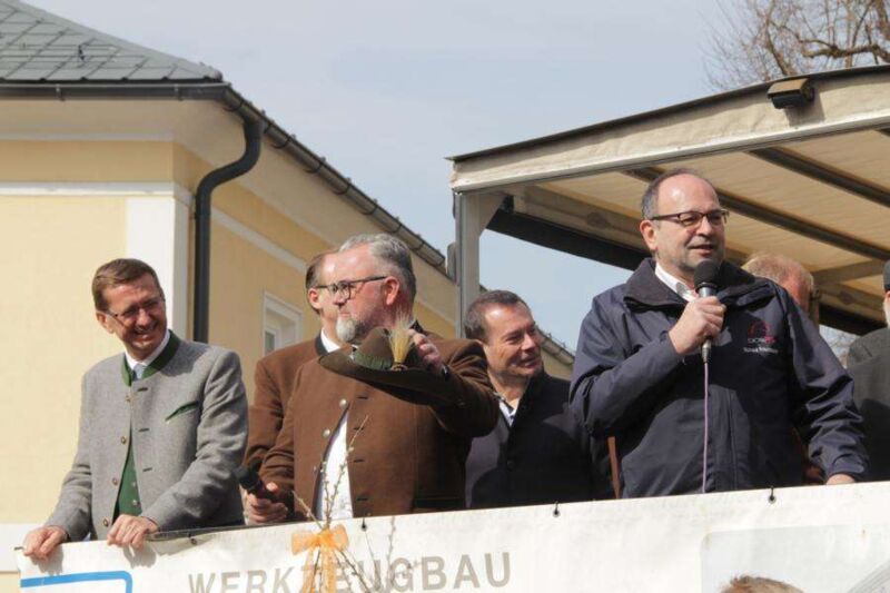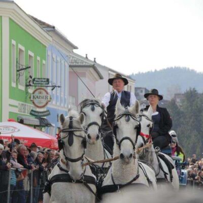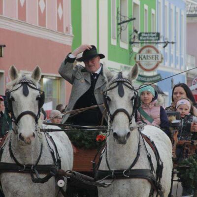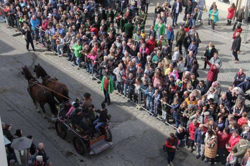 KÖNIGSWIESEN. Rundum gelungen - so kann man den 30. Jubiläums-Josefimarkt in der Mühlviertler Alm-Gemeinde Königswiesen zusammenfassen. Nach dem Bierwagen-Geschicklichkeitsfahren am Samstag stand der Sonntag, der eigentliche Josefi-Tag, ganz im Zeichen des traditionellen Programms. Nach dem Gottesdienst zu Ehren des Hl. Josef folgte der Einzug der Reiter und Fahrer. Dem schönen Wetter und dem Jubiläum war es geschuldet, dass sagenhafte 155 Pferde, unter dem Sattel und im Gespann, heuer unter dem tosenden Applaus der tausenden Zuschauer auf dem Königswiesener Marktplatz einzogen. Auch Wirtschaftlandesrat Markus Achleitner ließ sich dieses farbenprächtige Spektakel nicht entgehen.