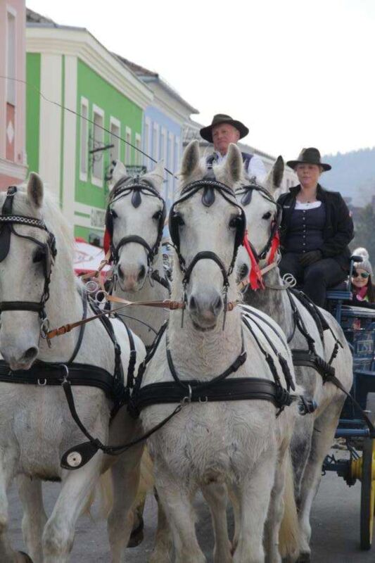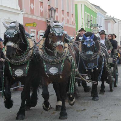 Überschattet war die Stimmung durch einen sehr traurigen Anlass, den Tod von Walpurga "Burgi" Kriechbaumer vom Reitpark Gstöttner in Schönau. Die Spitzenreiter des Josefizuges sowie die Schönauer Abordnung ritten deshalb auch mit Trauerflor ein. Markus Danninger, Obmann des Reitverbands Mühlviertler Alm und des Unterstützungsvereins für Pferdebesitzer, widmete den feierlichen Pferdeeinzug kurzerhand der Verstorbenen. Höhepunkte des Josefitages waren weiters der Kirtag, die Bewertung und Schätzung der Pferde der Mitglieder des Unterstützungsvereins für Pferdebesitzer sowie die Gewerbeschau der Wirtschaftsbetriebe, die sich heuer erstmals in der "Arena" im Markzentrum präsentierten.