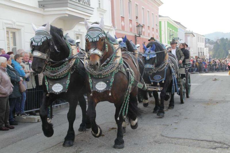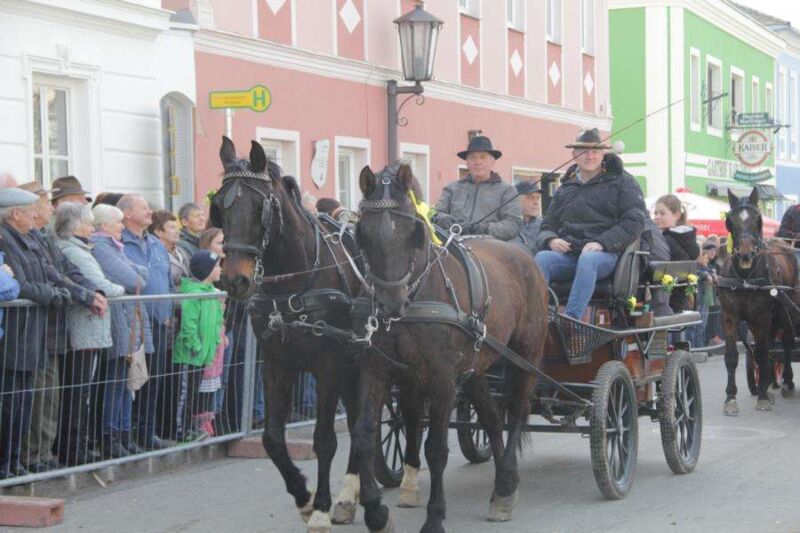 30. Josefimarkt in Königswiesen -Tag 2: Einzug der Reiter und Gespanne, Pferdeschätzung, Gewerbeschau, Kirtag