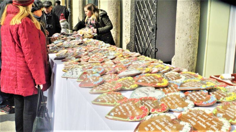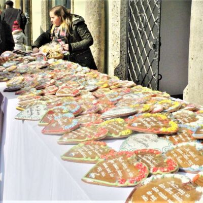 Der Festtag am So 19. März Liebstatt-Sonntag beginnt um 9.30 h mit der Bauernesse in der Stadtpfarrkirche Um 10.30 h folgt der Festzug zum Rathausplatz wo der Festakt statt findet. Es wird ein umfangreiches Rahmenprogramm geboten. Es werden viele Besucher erwartet. Das Foto zeigt, die Liebstattherzen, die den Besuchern zum Kauf angeboten werden. Foto: Friedrich Bamer.