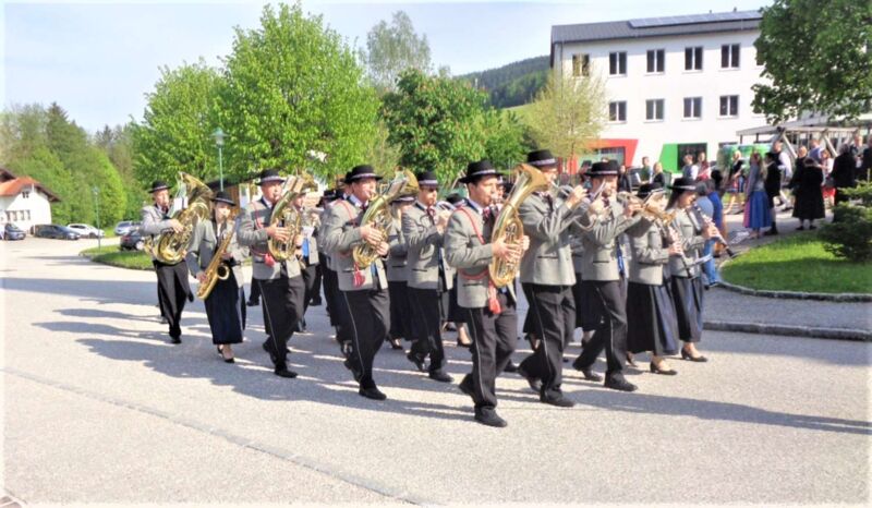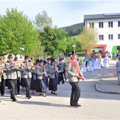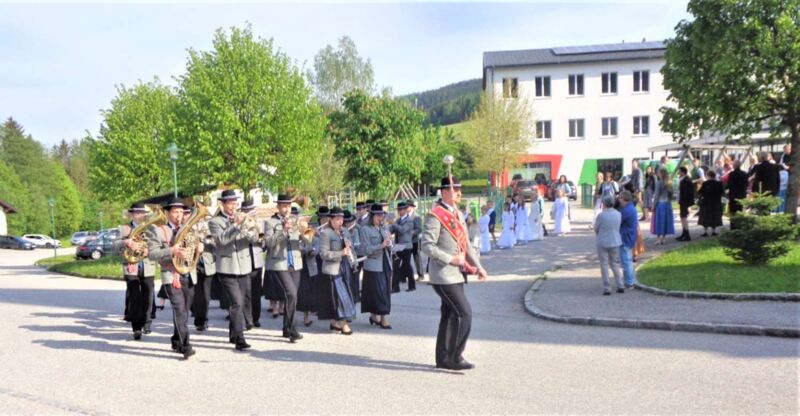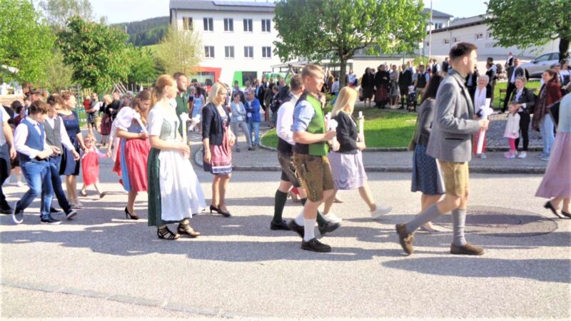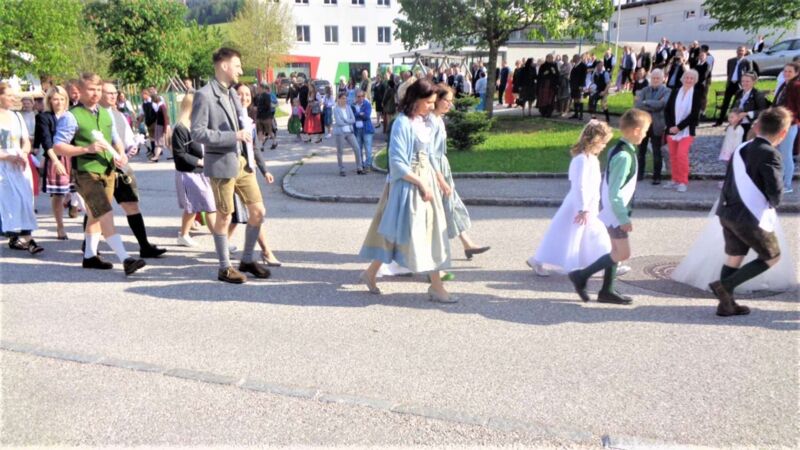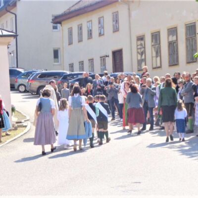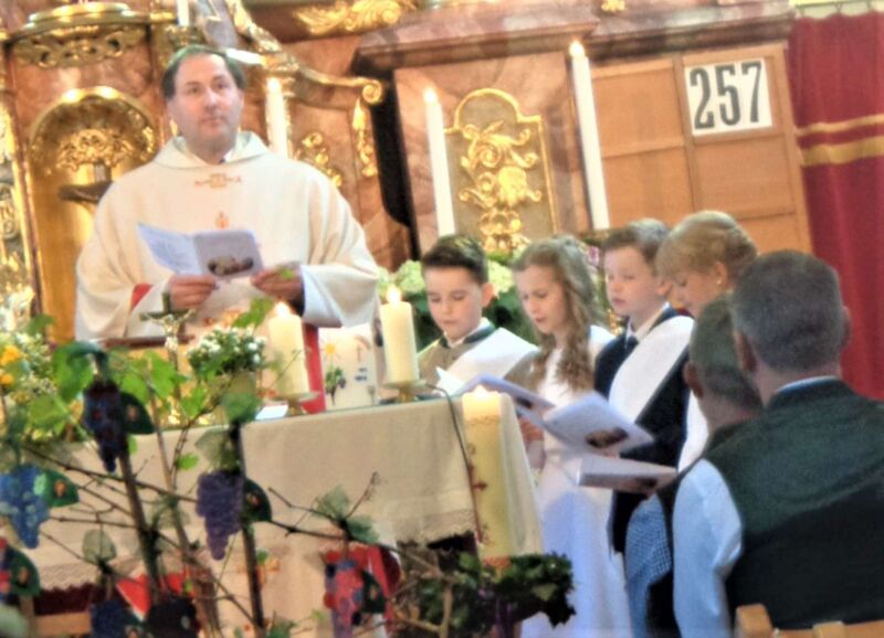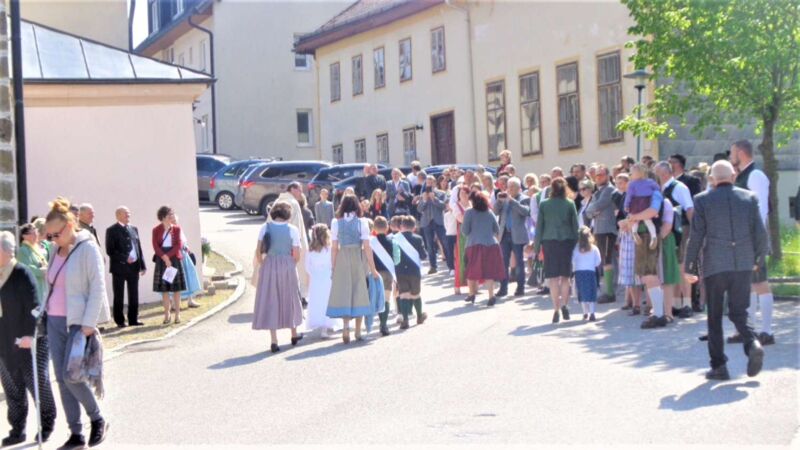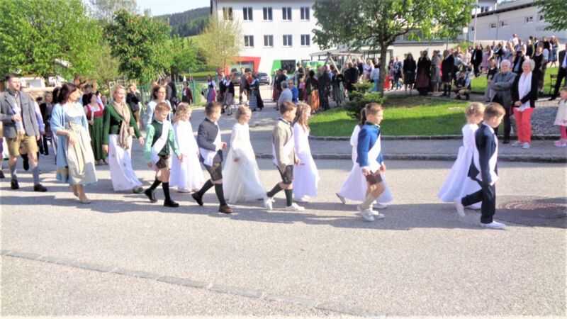 St. Konrad : Bei strahlendem Sonnenschein wurde am Sonntag, 21. Mai die Erstkommunion in dieser Pfarre durchgeführt. Unter den Klängen der Ortsmusikkapelle ging der Festzug zur Kirche. Der Herr Pfarrer P. Leopold Fürst zog mit den 10 Erstkommunionkindern und deren Eltern und Paten in das Gotteshaus ein, dessen Festzug sich das übrige Gläubige Volk anschloß und die Kirche bis auf den letzten Platz besetzt war.