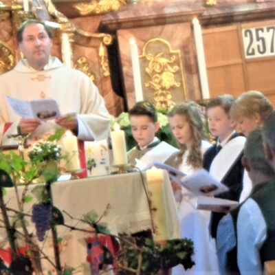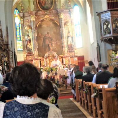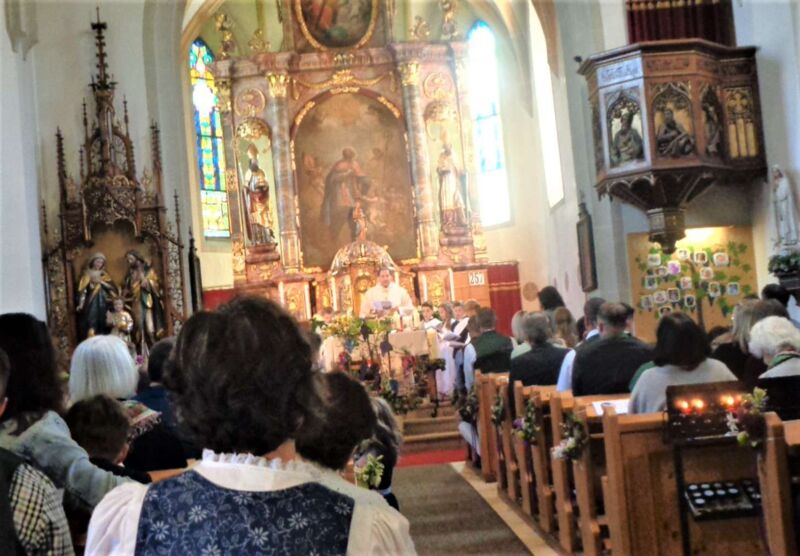 Durch die Instrumentalbegleitung wurde der Gottesdienst noch bereichert. Mit dem Loblied " Großer Gott wir loben Dich " klang diese schöne Feierstunde aus, was für viele ein unvergeßliches Erlebnis bleiben wird. Allen Tischmüttern und Helfern die für das gute Gelingen dieses Tages beigetragen haben wurde gedankt.