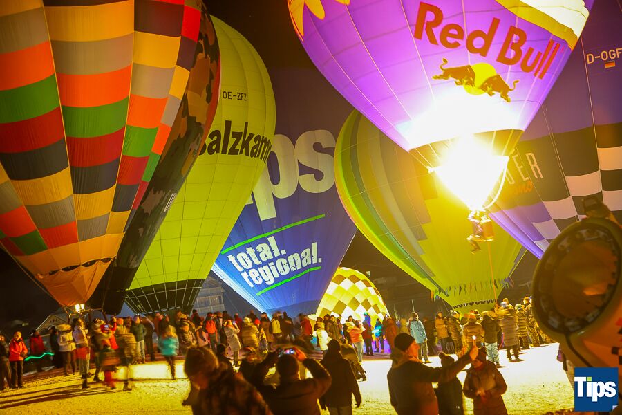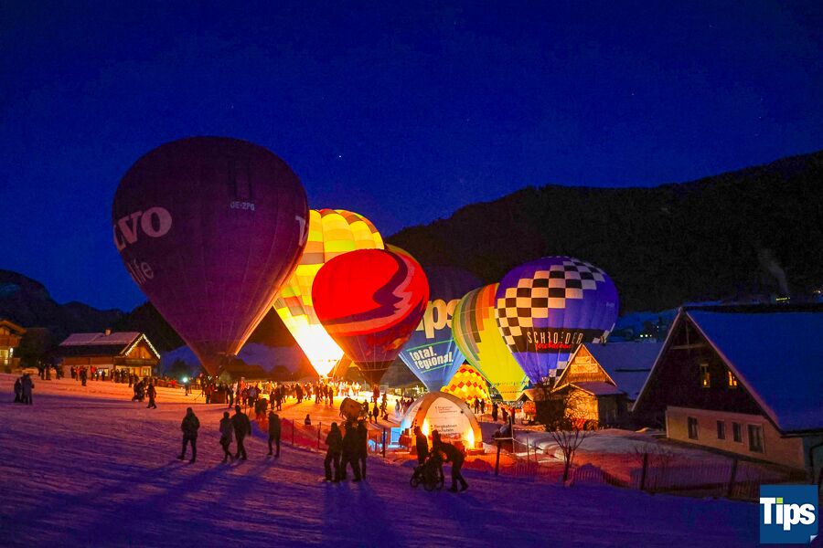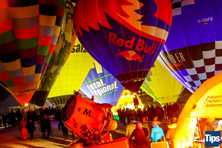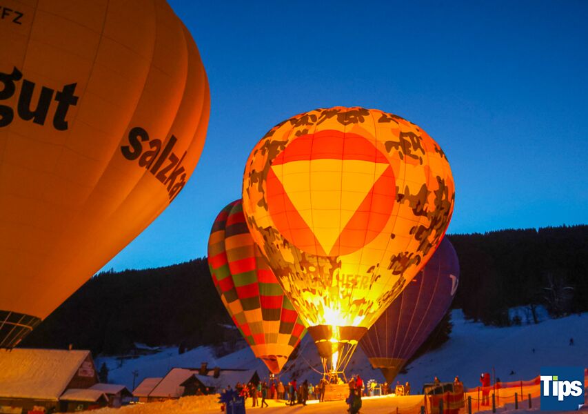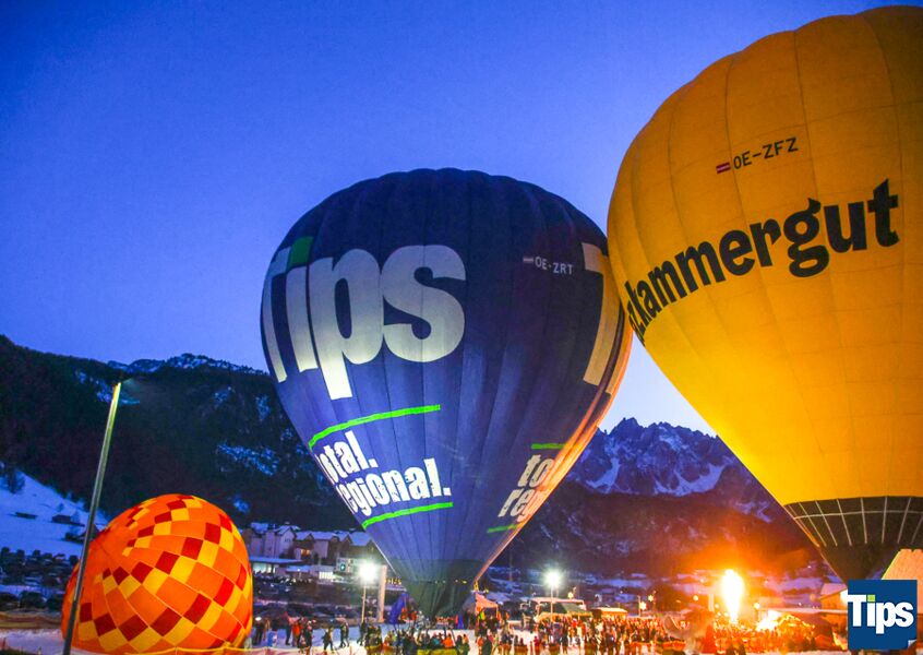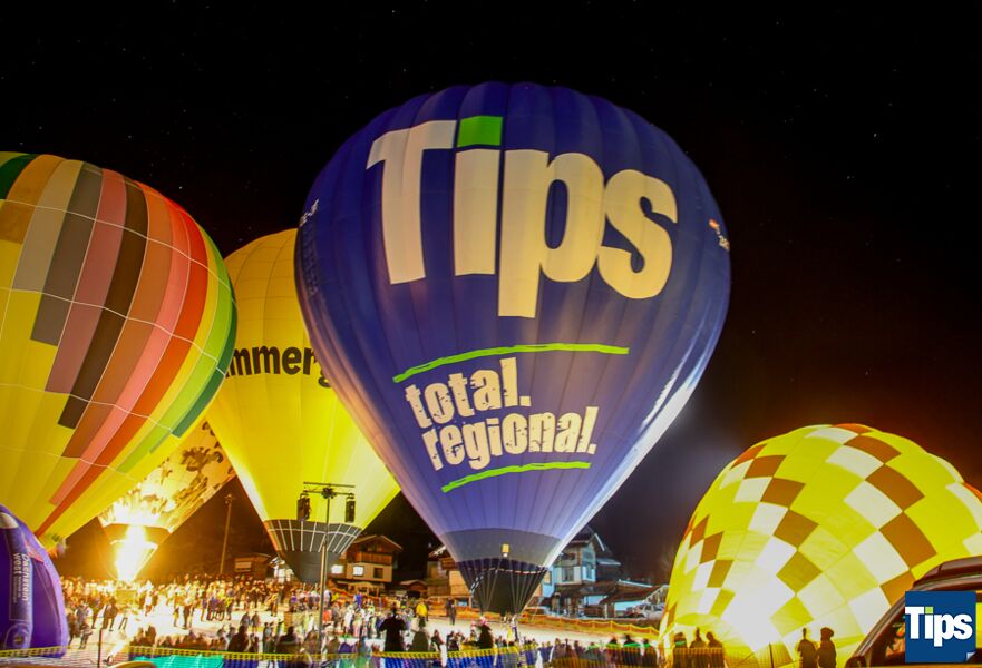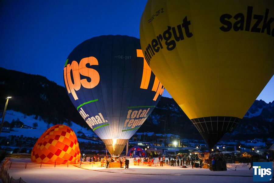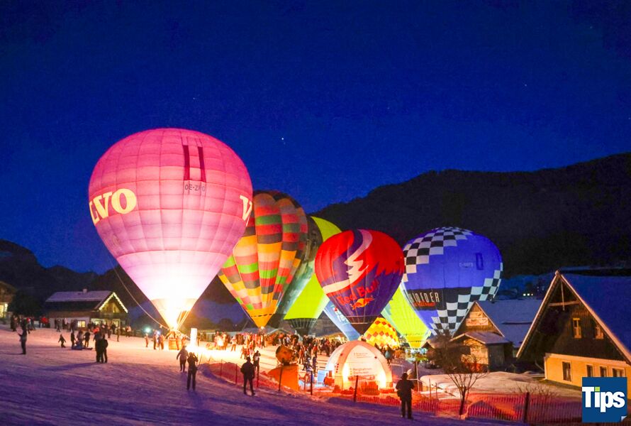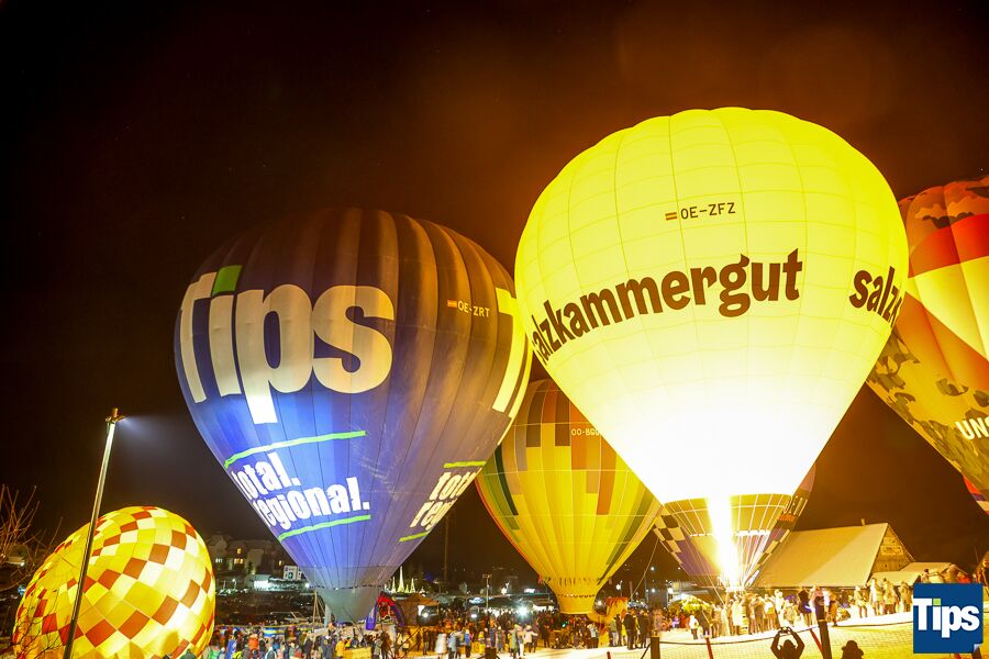 Gosau. Bereits zum 33. Mal fand anlässlich der Gosauer Ballonwoche bei der Hornspitzbahn-Talstation die Nacht der Ballone statt. Im Takt der Musik wurden die Ballone erleuchtet und schafften ein faszinierendes Farbspiel.