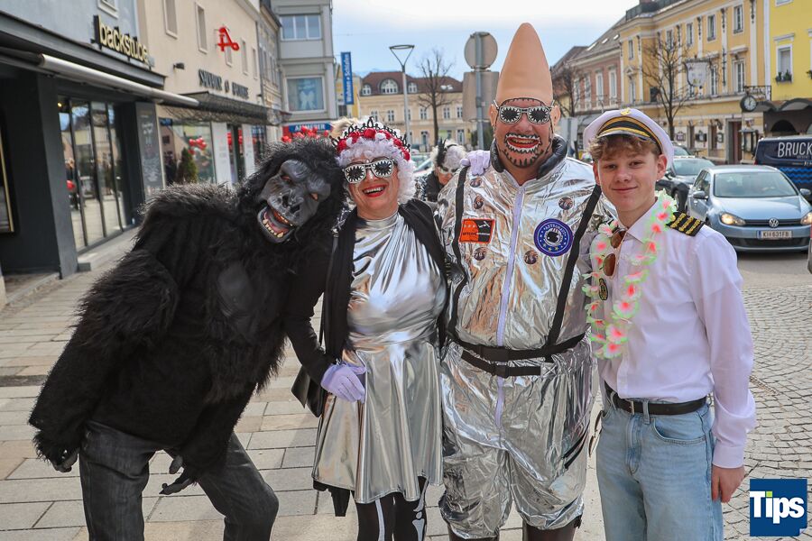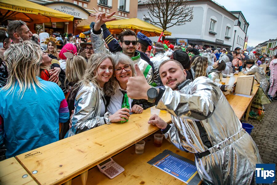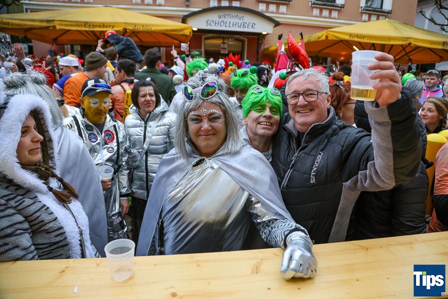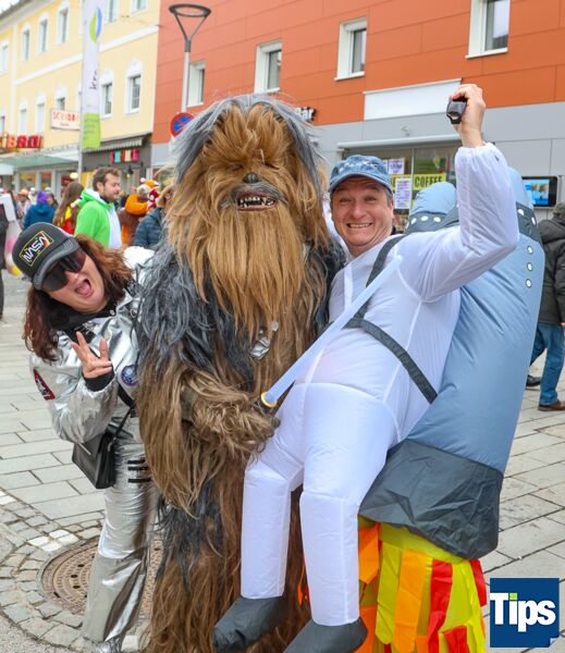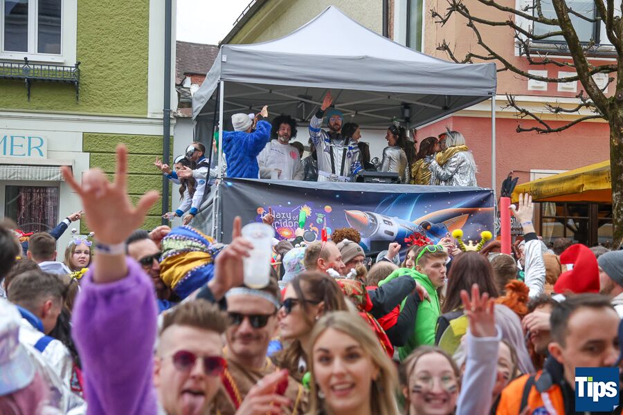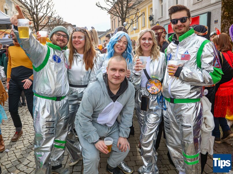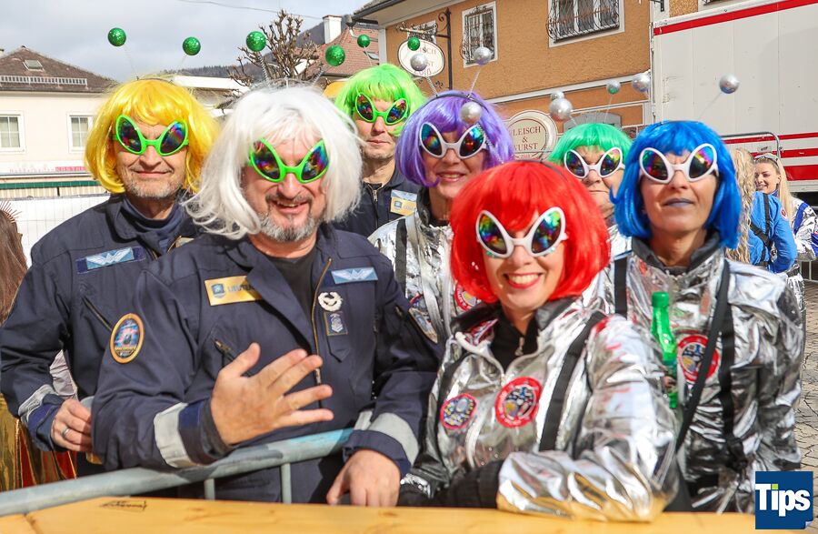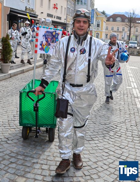 Kirchdorf. Zahlreiche Faschingsnarren machten auch heuer wieder am Faschingssamstag Kirchdorf zur Partyzone. Das diesjährige Motto lautete "Galaxy of Kiridorf". Viele Astronauten und Ausserirdische landeten in der Innenstadt.