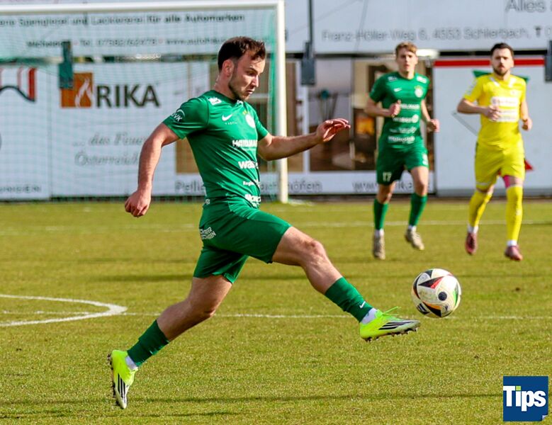 Micheldorf. Der SV Haidlmair Grün-Weiß Micheldorf schwimmt in der Rückrunde der LT1 OÖ-Liga weiterhin auf einer Erfolgswelle. Unter Neo-Coach Qerim Idrizaj gab es auch im zweiten Spiel einen vollen Erfolg. Gegen UVB Vöcklamarkt gelang dem Dino der Liga vor 250 Besuchern ein überzeugender 3:0 Erfolg. Bereits in der 30. Spielminute stieg Mario Biljesko nach einem Eckball im Strafraum am höchsten und erzielte mit einem Kopfball das Führungstor für die Kremstaler. Fünf Minuten nach Wiederbeginn setzte sich Trojan Maloku gegen seinen Gegenspieler durch und erzielte mit einem satten Schuss von der Strafraumgrenze die Vorentscheidung. Kurz nach seiner Einwechslung sorgte Yigit Yilmaz in der 73. Minute für den Endstand von 3:0.