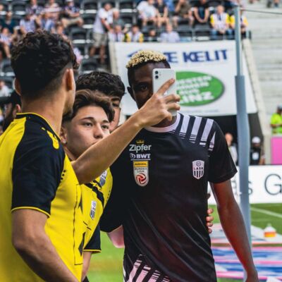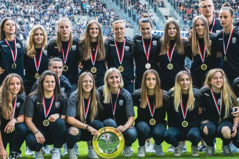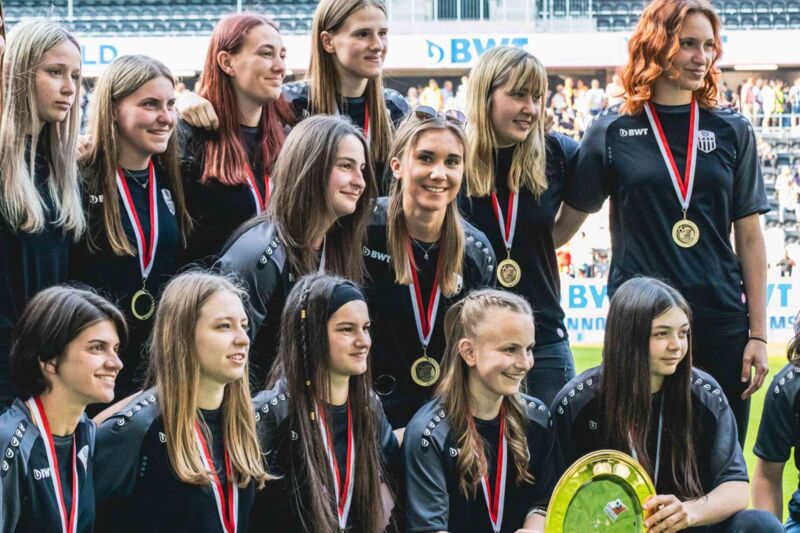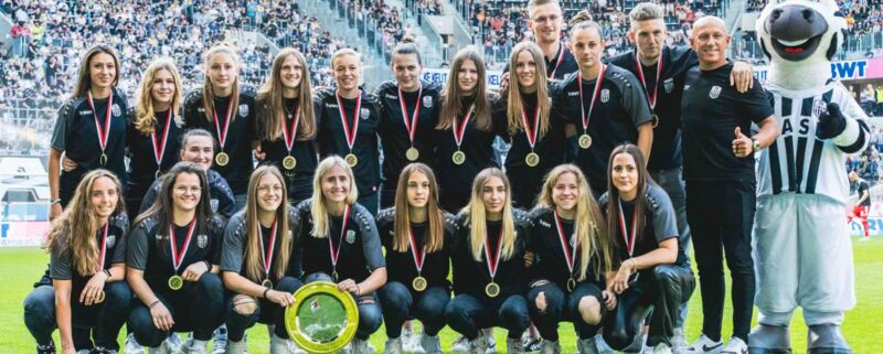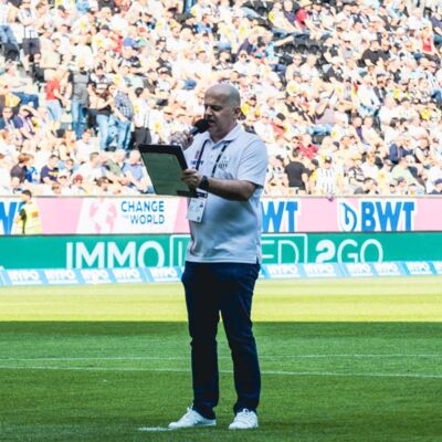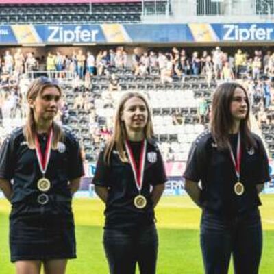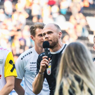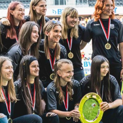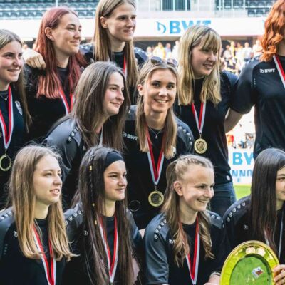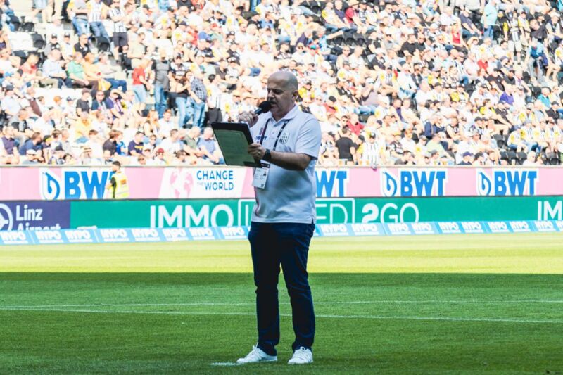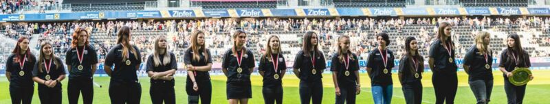 Weiteres wurde in der Halbzeitpause auch der Damen-Mannschaft des LASK gratuliert. Die sich vor ein paar Tagen zum Meister der LT1 OÖ Liga der Frauen machten.