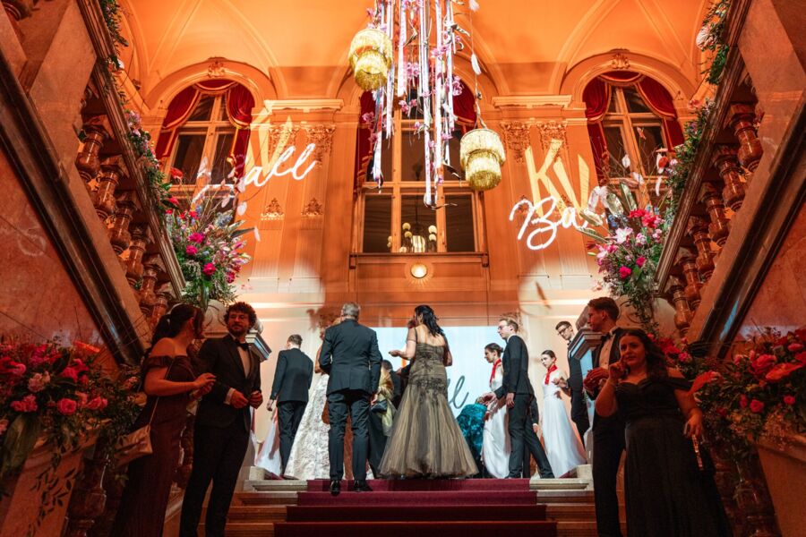 "Ich war noch niemals im Palais" lautete das Motto, unter dem der Kaufmännische Verein und die WKO Oberösterreich das ausverkaufte Palais Linz einmal mehr in ein ehrenwertes Haus verwandelten. Der 75. KV-Ball wurde zur stimmungsvollen Hommage an den Grandseigneur des deutschsprachigen Chansons, Udo Jürgens, dem vor allem Simon Stadler mit der Mitternachtseinlage alle Ehre erwies. Die Eröffnung gestaltete die Tanzschule Horn.