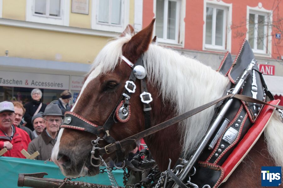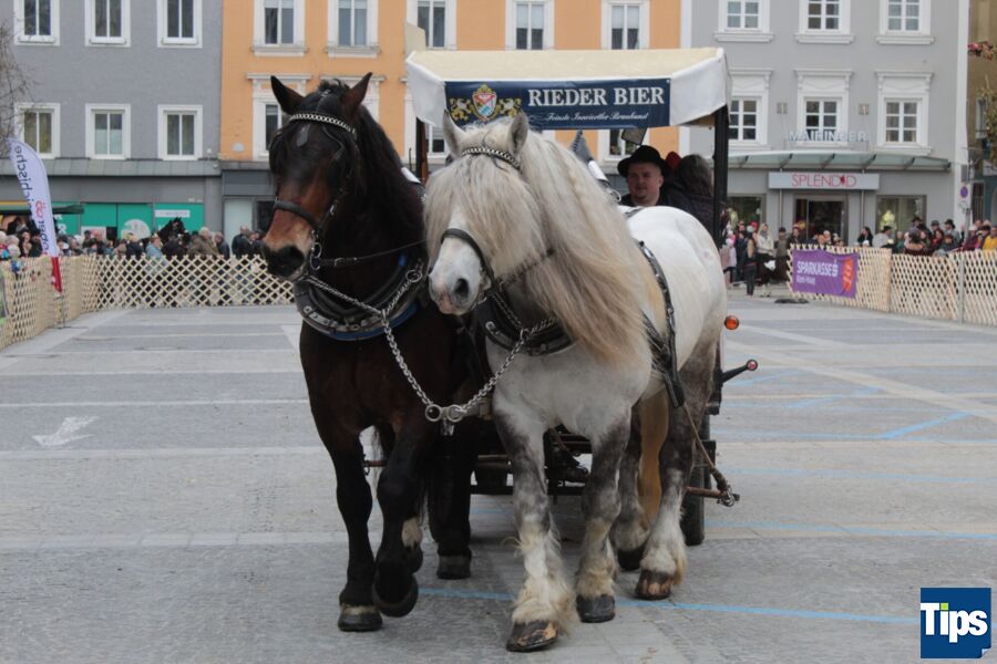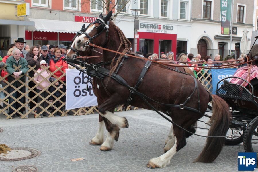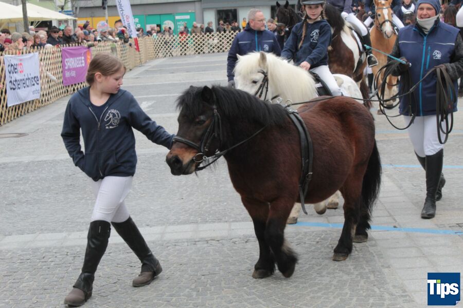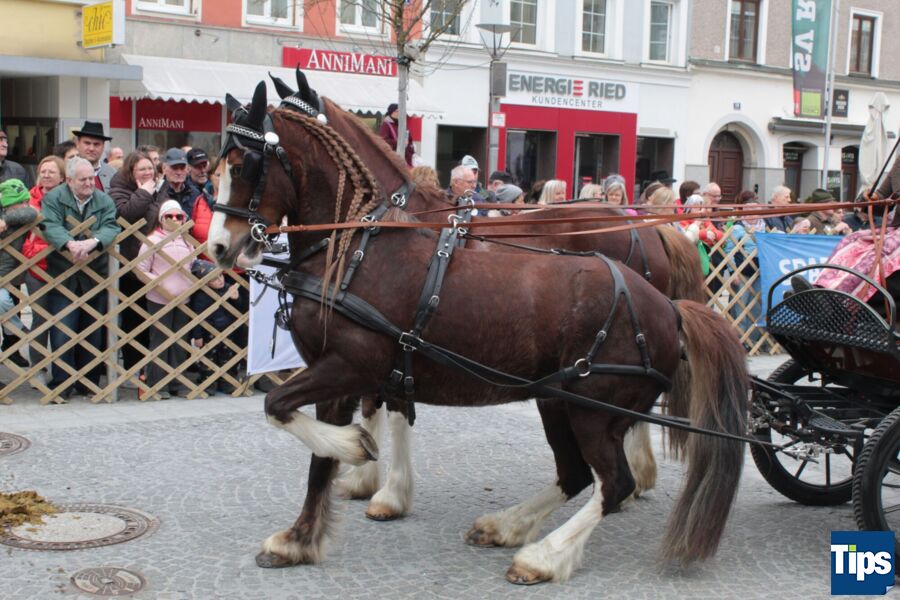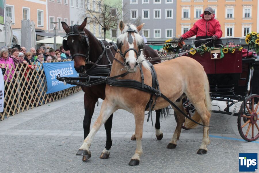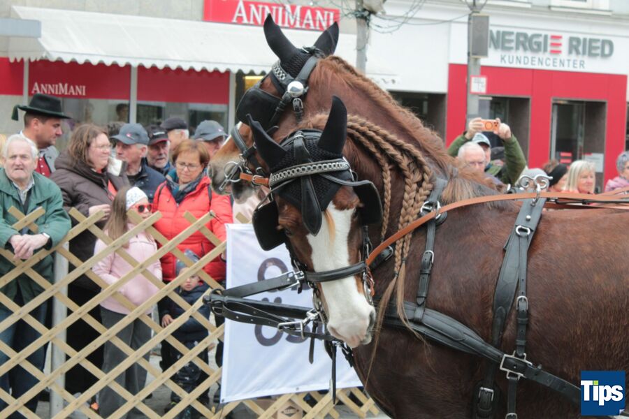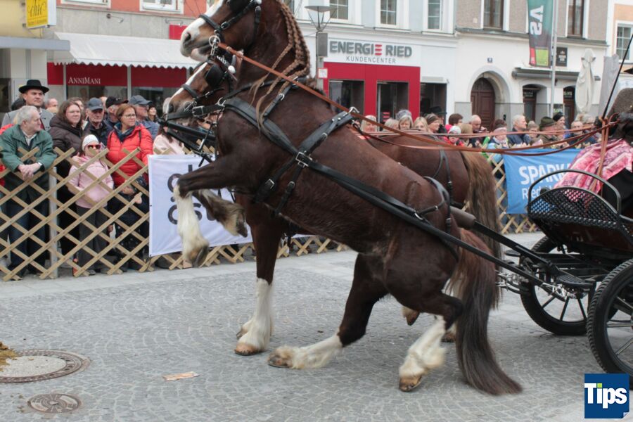 Wegen der unsicheren Wettervorhersage nahmen heuer wesentlich weniger Pferdehalter mit ihren Tieren am Rieder Pferdemarkt teil.