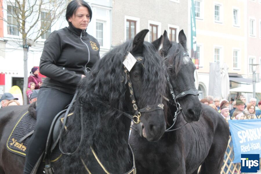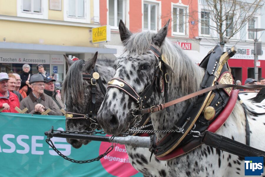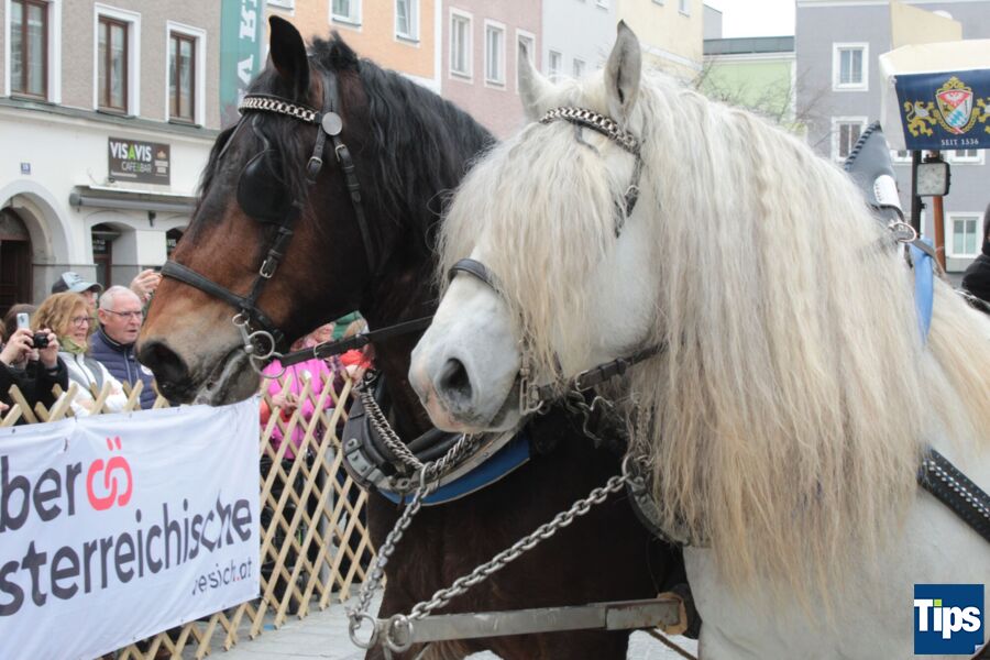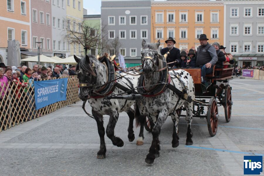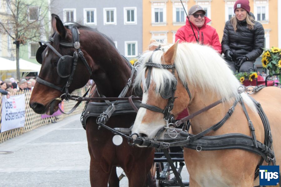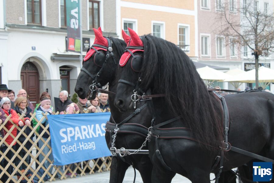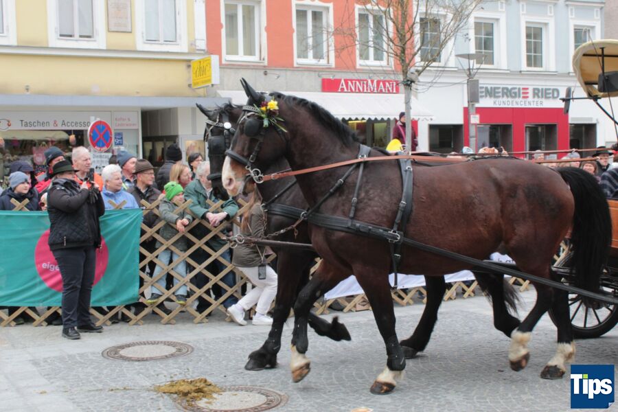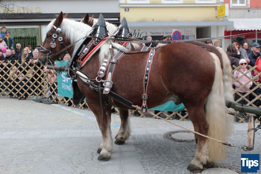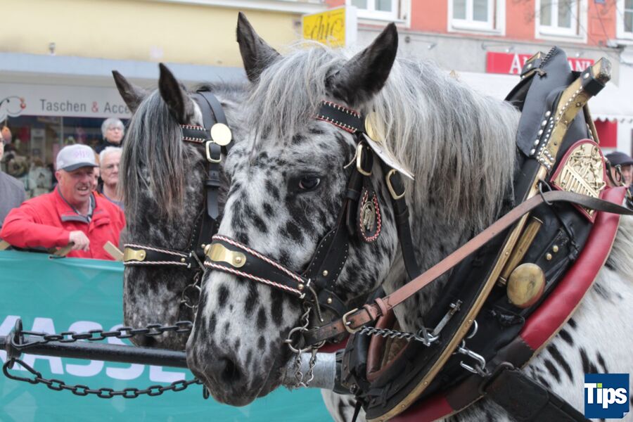 Wegen der unsicheren Wettervorhersage nahmen heuer wesentlich weniger Pferdehalter mit ihren Tieren am Rieder Pferdemarkt teil.