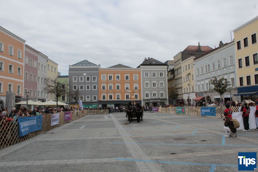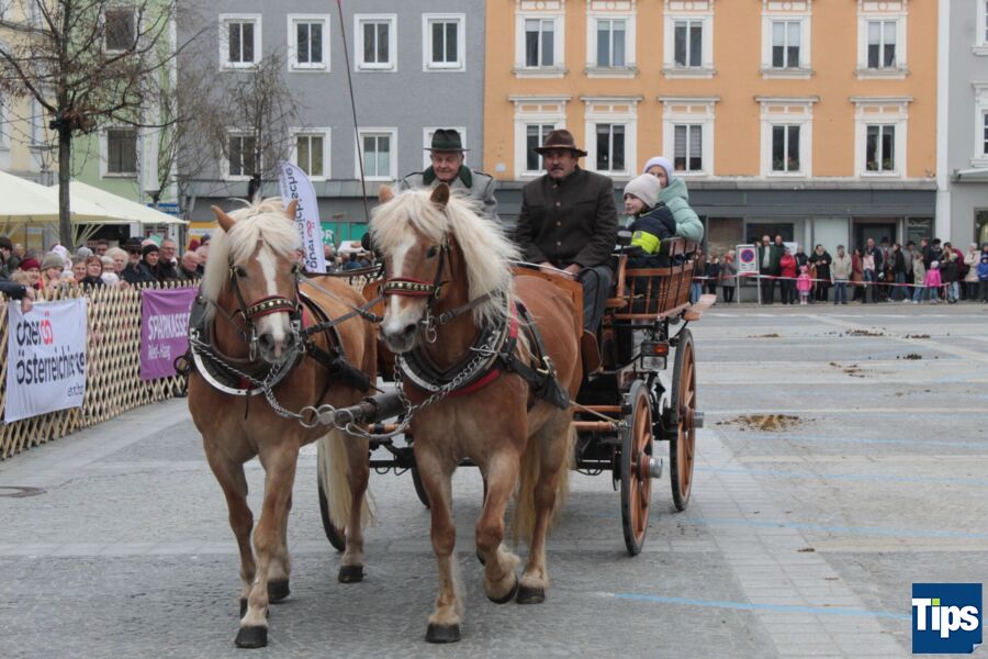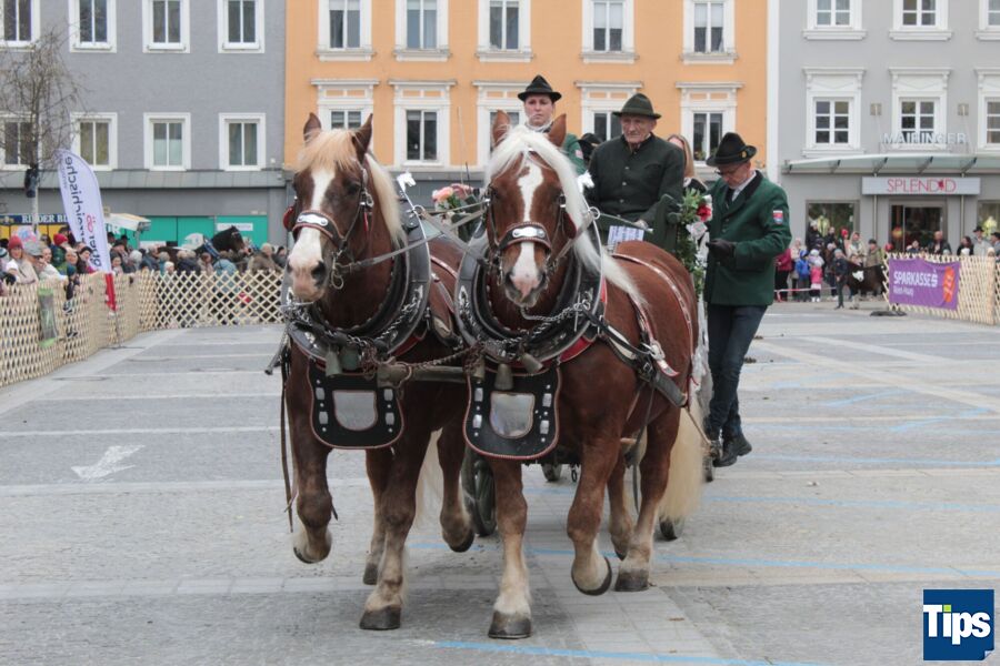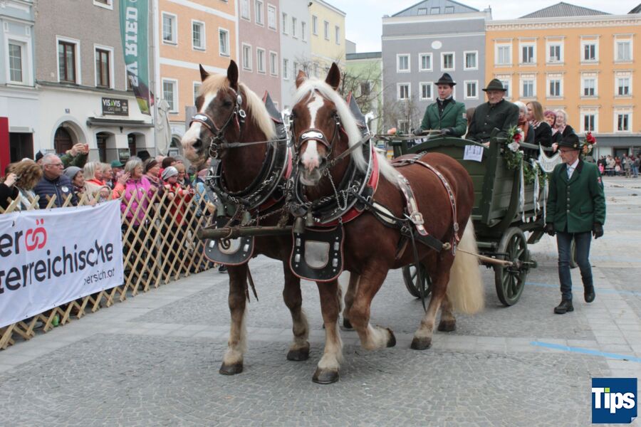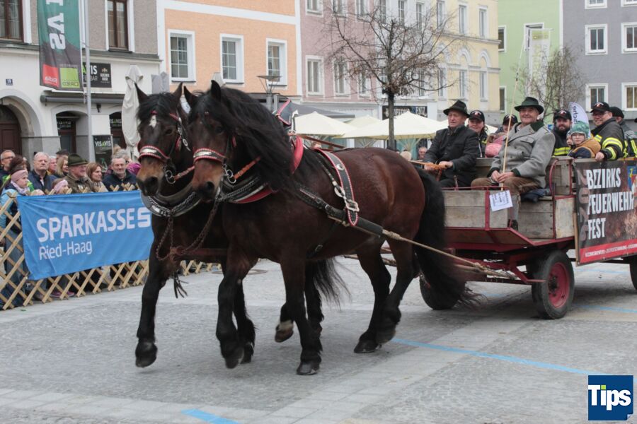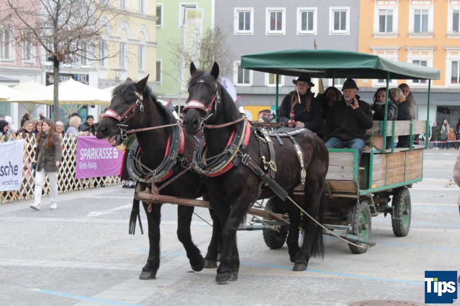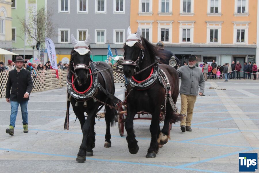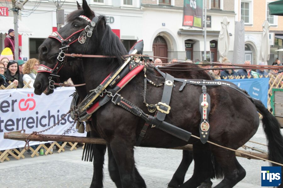 Wegen der unsicheren Wettervorhersage nahmen heuer wesentlich weniger Pferdehalter mit ihren Tieren am Rieder Pferdemarkt teil.