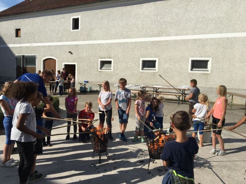 Als krönenden Abschluss wurde mit den Kindern noch eine Feuerstelle angezündete, an welcher dann Knacker und selbst hergestelltes Stockbrot gegrillt wurde.