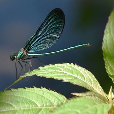 Nach einiger Zeit Anschleichen im Bachbett des Leitenbaches (im Bereich Willingerdorf) konnte ich dieses Exemplar einer Blauflügel-Prachtlibelle (Männchen) mit dem Fotoapparat einfangen.