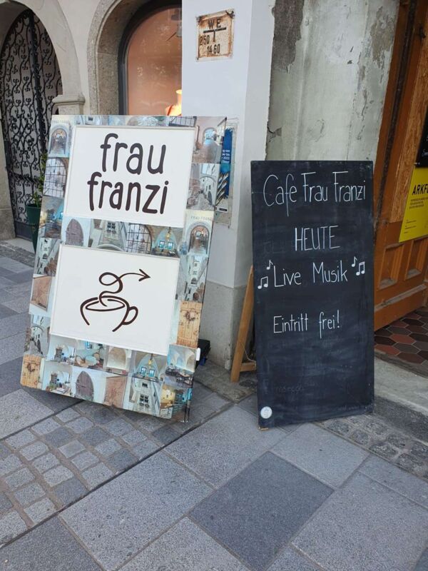 An einem der letzten lauen Spätsommerabende im September konnten abendliche Steyrer Altstadtbesucher das gastfreundliche Service, pikante Schmankerl und himmlische Mehlspeisen bei der ansprechenden Live - Musik des Akustik Ensembles CREME FINE unter freiem Himmel genießen. Zu hören gab es ein abwechslungsreiches Repertoire bekannter Lieder und Eigenkompositionen wie "Dunkelblau" oder den Steyrsong "Wossa und Feia", eine musikalische Liebeserklärung an die alte Eisenstadt.