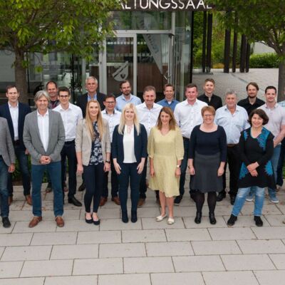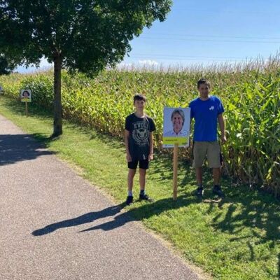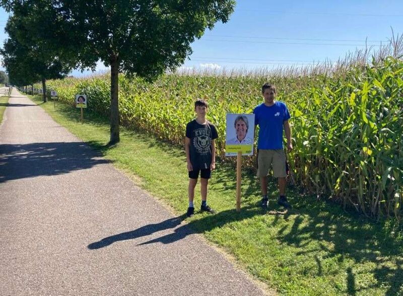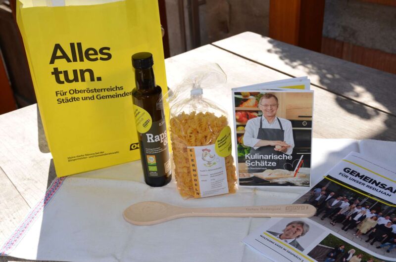 Die 29 Kandidaten und Kandidatinnen der ÖVP Redlham machen mit ihrem Bürgermeister Wolfgang Kaiß Werbung für sich und ihre Arbeit.