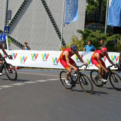 Wels. Mehr als 300 Triathleten nahmen an den drei durchgeführten Bewerben teil. Nach 750 Metern in der Traun mussten die Teilnehmer bei Sommertemperaturen 20 Kilometer mit dem Rad und 5 Kilometer laufend bewältigen. Die neuen Rad- und Laufstrecken führten durch die Welser Innenstadt.