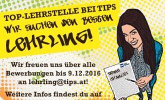 Top-Lehrstelle bei Tips Lehrling zum/zur Bürokaufmann/-frau Start: Anfang September 2017 In deinen 3 Lehrjahren bekommst du ...