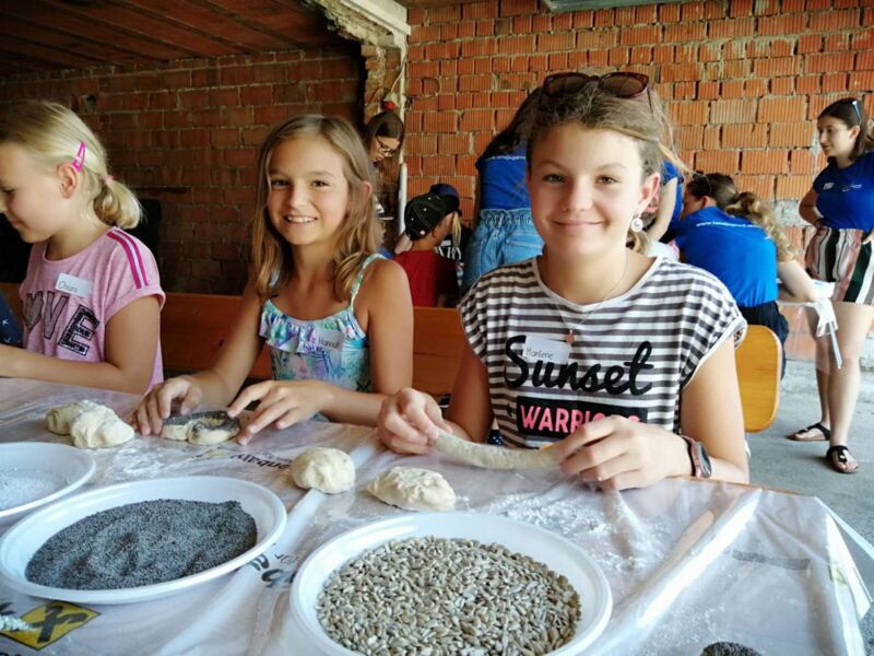 Neben dem Zubereiten von leckeren Weckerl, wurde erstmals der neu errichtete Brotlehrpfad begangen und so den Kindern anhand der unterschiedlichen Tafeln der Weg „vom Korn zum Brot“ mit verschiedenen Aufgaben und Spielen nähergebracht. Zum Abschluss wurde gemeinsam eine gesunde Jause mit dem Landjugendbrot, ein Emmervollkornbrot, und selbst gemachten Aufstrichen zubereitet