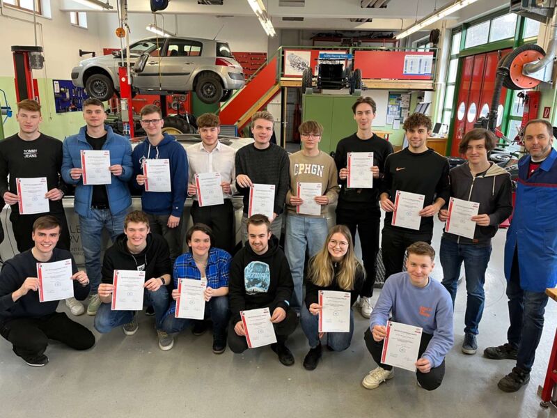 Die bestehende, sehr erfolgreiche Kooperation der HTL Steyr mit der TÜV AUSTRIA Akademie geht in die nächste Runde. Die Ausbildung im Bereich Hochvolttechnik an Elektrofahrzeugen wird massiv ausgeweitet. Bis vor kurzem war diese den Mitarbeiter:innen in der Elektromobilitätsbranche vorbehalten. Vor wenigen Tagen haben nun auch Schüler:innen der Maturaklassen das Zertifikat nach einer theoretischen und praktischen Prüfung erworben.