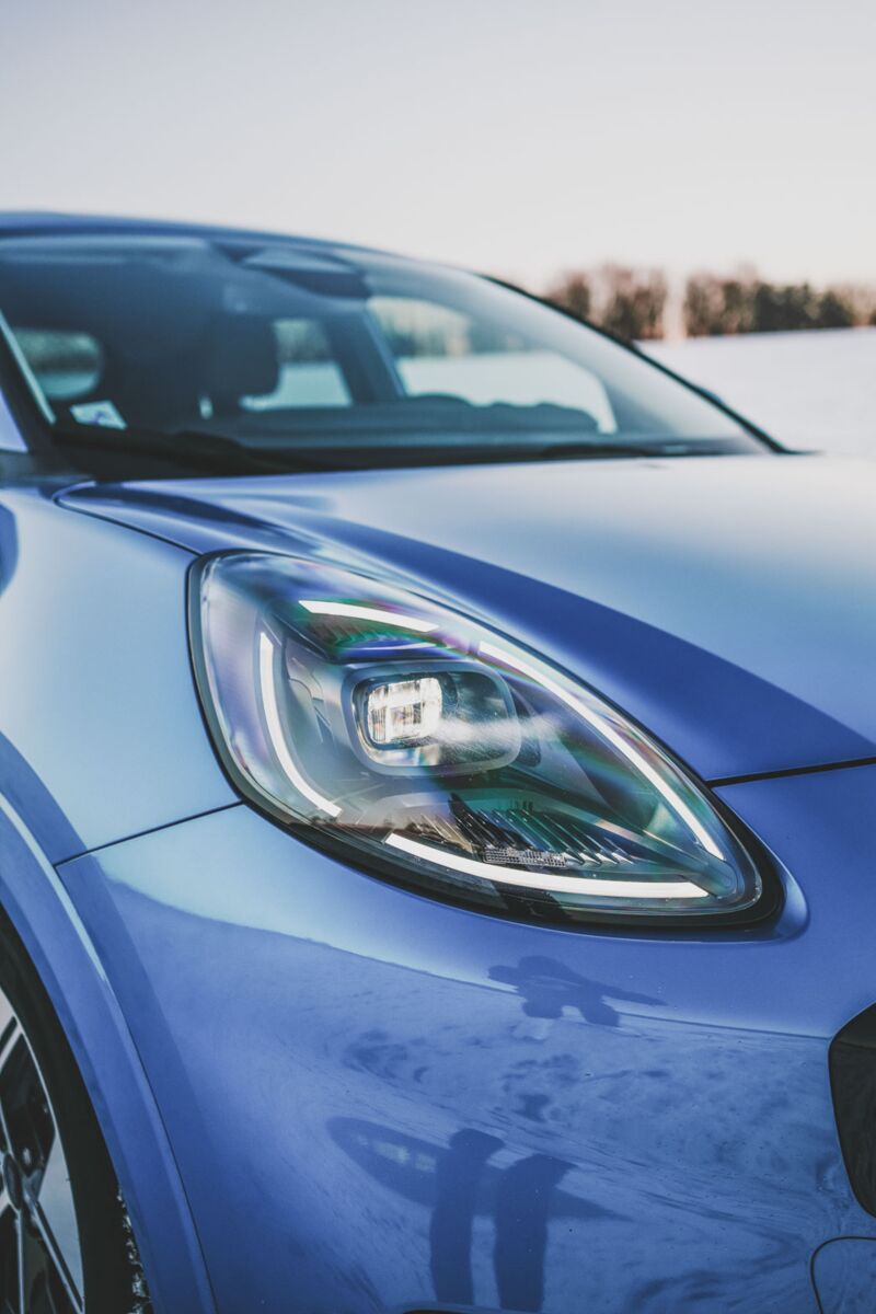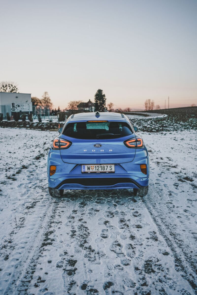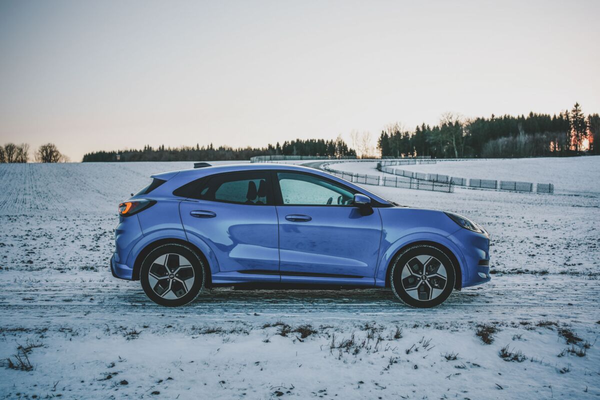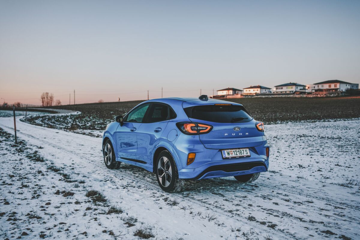 Nach außen hin gibt sich der Gen-E durch die aerodynamisch optimierte Front und die originellen Alu-Felgen zu erkennen. Die Aufmerksamkeit lässt sich via Farben optimieren. Wäre auch im Sinne von Ford, immerhin ist „Electric Yellow“ die einzig aufpreisfreie Lackierung. Etwas dezenter, aber trotzdem auffällig: Das „Digital Aqua Blue“-Metallic unseres Testmodelles. Das Farbenspiel ist im Interieur eh wieder vorbei, hier gibt sich der Puma seriös und überzeugt mit einer feinen Verarbeitung.