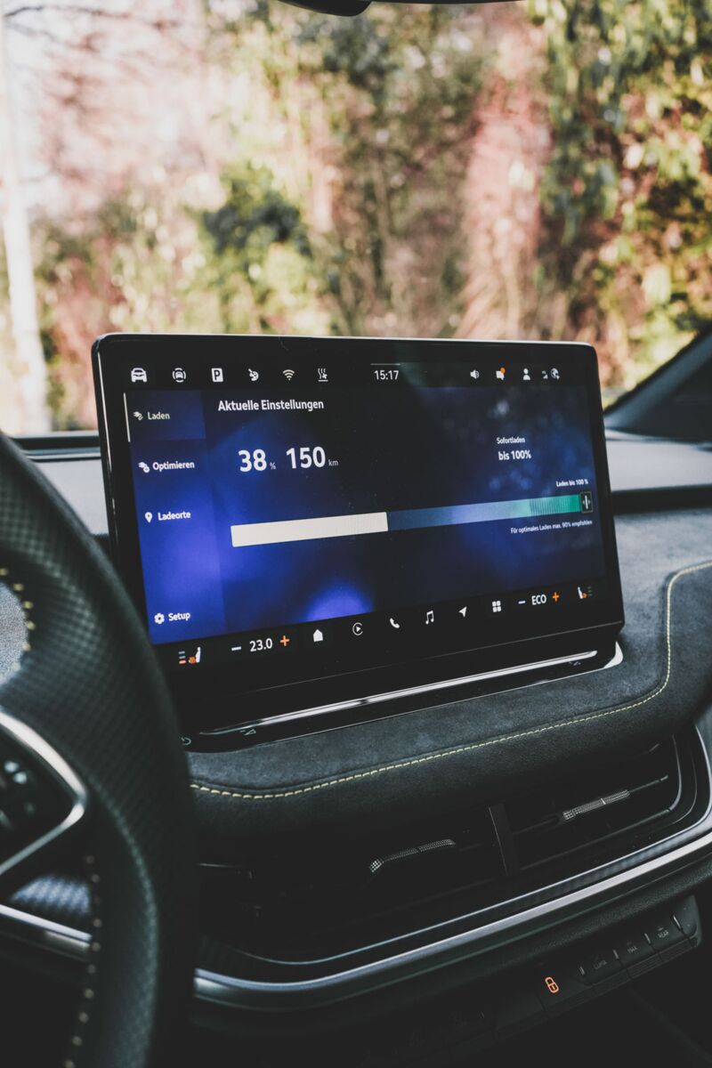 Allrad, Sportfahrwerk, Sportsitze und Alu-Pedale fordern das geradezu heraus, auch nach sportlicher Kurvenjagd verlangt es den Skoda immer wieder einmal. Trotzdem bleibt die Reichweite dabei an kalten Tagen stets stabil über 400 Kilometer, geht man es entspannter an (was eh meistens der Fall sein wird), legt der Skoda nochmal 100 Kilometer drauf. Geladen wird übrigens mit maximal 185 kW, 26 Minuten dauert das Laden von 10 auf 80%.