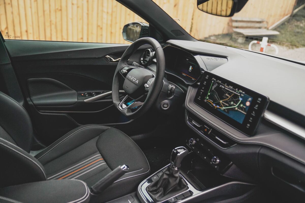Der im Interieur nicht wirklich nachlässt. Sportsitze mit integrierten Kopfstützen und silberne Dekoreinlagen mit matten Oberflächen erfreuen das Auge, während die Hände ihre Finger nicht vom Sportlederlenkrad lassen können. Komfort kommt auch vor, abseits von Sitz- und Lenkradheizung sollte man sich aber nicht zu viel erwarten Wobei die wunderbar einfache Bedienung in dem Kontext nicht unterschätzt werden darf. Der Jüngste ist der Fabia ja nicht mehr, analoge Klimasteuerung und klassische Lenkradtasten sind aber bei Gott kein Nachteil.