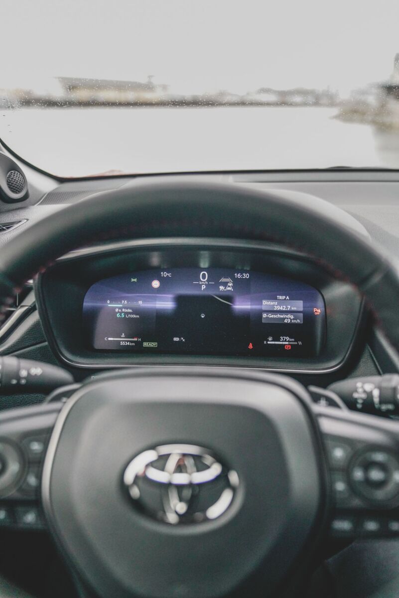 Unser Test-Corolla Cross startet bei 45.690,00 EUR, neben den sportlichen Features sind auch 2-Zonen Klima, Keyless und Smartphone-Integration serienmäßig.