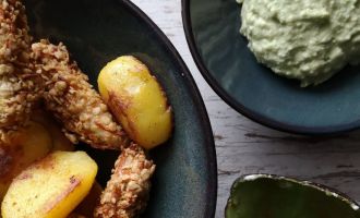 - Den Kartoffelstampf mit dem Spinat vermengen. Mit Salz und Pfeffer gut würzen.
