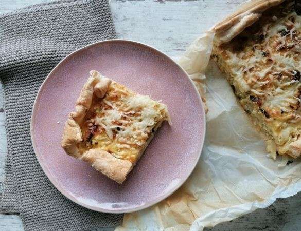 - Anschließend die Zwiebelmasse hineinleeren, restlichen Käse darüberstreuen und bei 180 Grad ca. 40 Minuten in den Ofen geben.