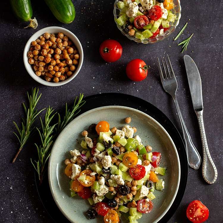 Griechischer Bauernsalat-Tabouleh mit gerösteten Kichererbsen