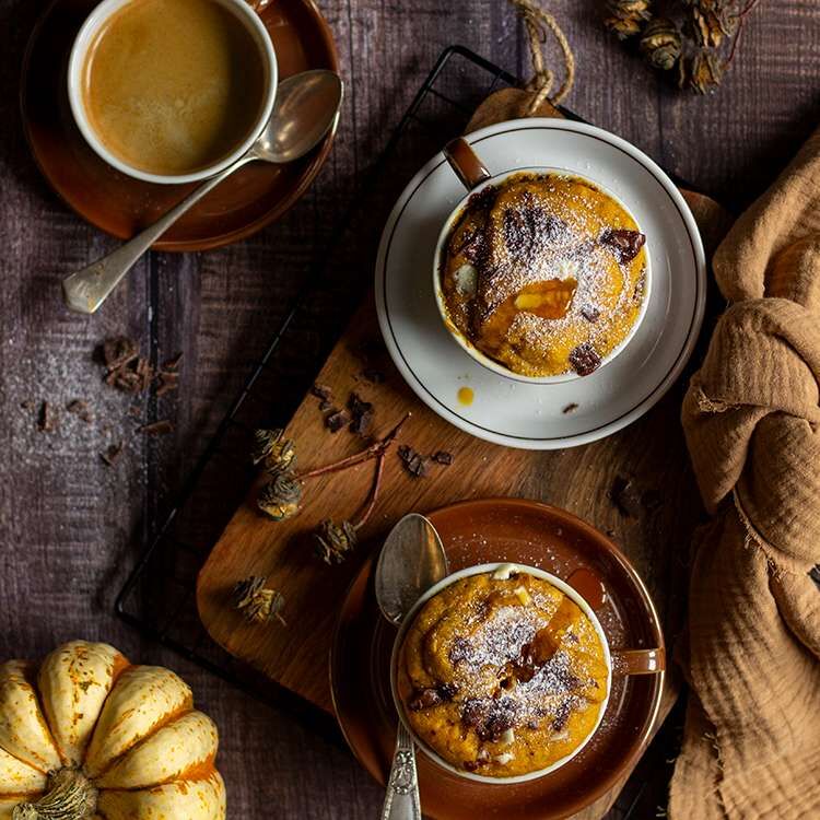 - Mit Staubzucker und Pumpkin Spice Sirup garnieren und servieren.