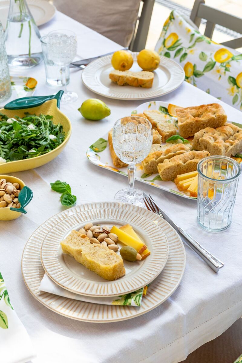 - Dazu reichen wir grüne Oliven, Pistazien, einen erfrischenden Rucola-Mozzarella-Salat, würzigen Käse und kalte Getränke.