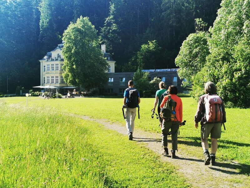 Die insgesamt 740 im Aufstieg erklommenen Höhenmeter fordern uns nun im Abstieg. Dank des abwechslungsreichen Waldweges mit schönen Fotomotiven von saftigen Wiesen, Kühen und beeindruckenden Wasserspielen und der entspannten Plauderei als Begleiter erreichen wir nach etwa sechs Stunden (inklusive Genusspausen) gut gelaunt unseren Ausgangspunkt. Ein guter Tipp, die vielleicht etwas müden Beine zu erfrischen, ist ein Abstecher zum 15 Minuten-entfernten Gleinkersee, der mit Traumkulisse und erfrischenden Temperaturen die Sommer-Wanderung perfekt abrundet.