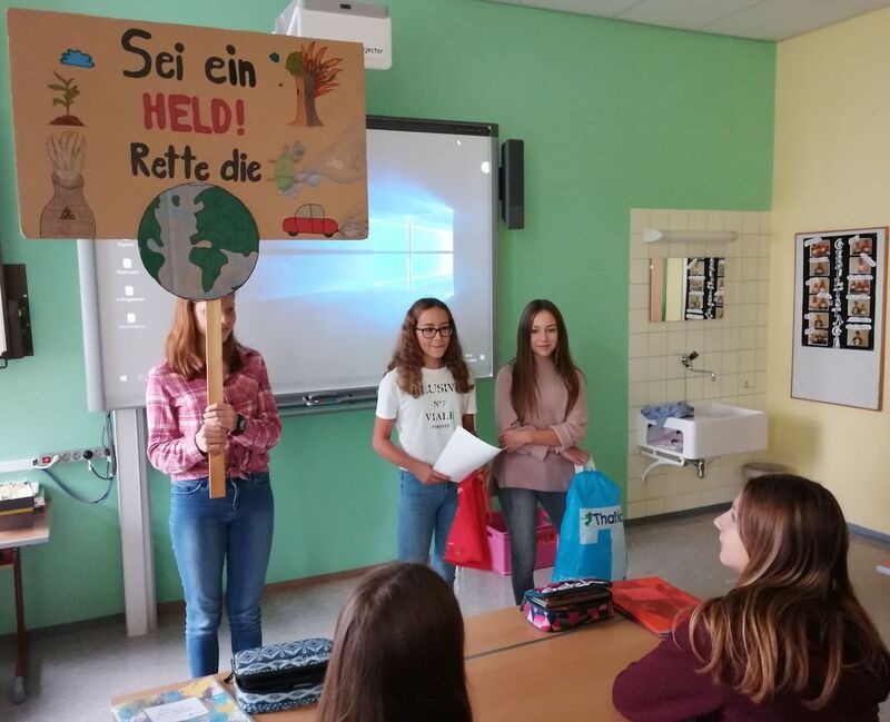 „Fahr nicht fort, kauf` ein im eigenen Ort!“ „Elektrogeräte komplett ausschalten anstatt Standby!“ „Stoßlüften!“ Das sind nur einige der wöchentlichen Klimatipps, die engagierte Jugendliche der Technisch-Naturwissenschaftlichen Mittelschule Lembach als Klimabotschafter*innen ihren Mitschülern im Schuljahr 2019/20 vermittelten. Zur Veranschaulichung zeigten sie passende Gegenstände und ein illustriertes Merkblatt. Im Schuljahr 2020/21 wurde der Aktionsradius des Projekts erheblich erweitert: In ihrer Freizeit bringen die Jugendlichen regelmäßig ihre Klimatipps in mehrere Gemeinde- und Pfarrämter, Schulen und Geschäfte, wo diese in Schaukästen und Auslagen veröffentlicht werden. So können viele Menschen – Groß und Klein, Alt und Jung - die Klimatipps lesen und zum klimafreundlichen Handeln im Alltag motiviert werden.