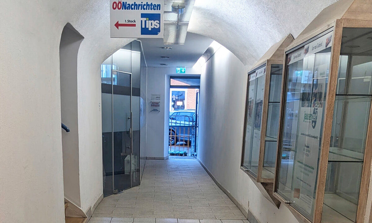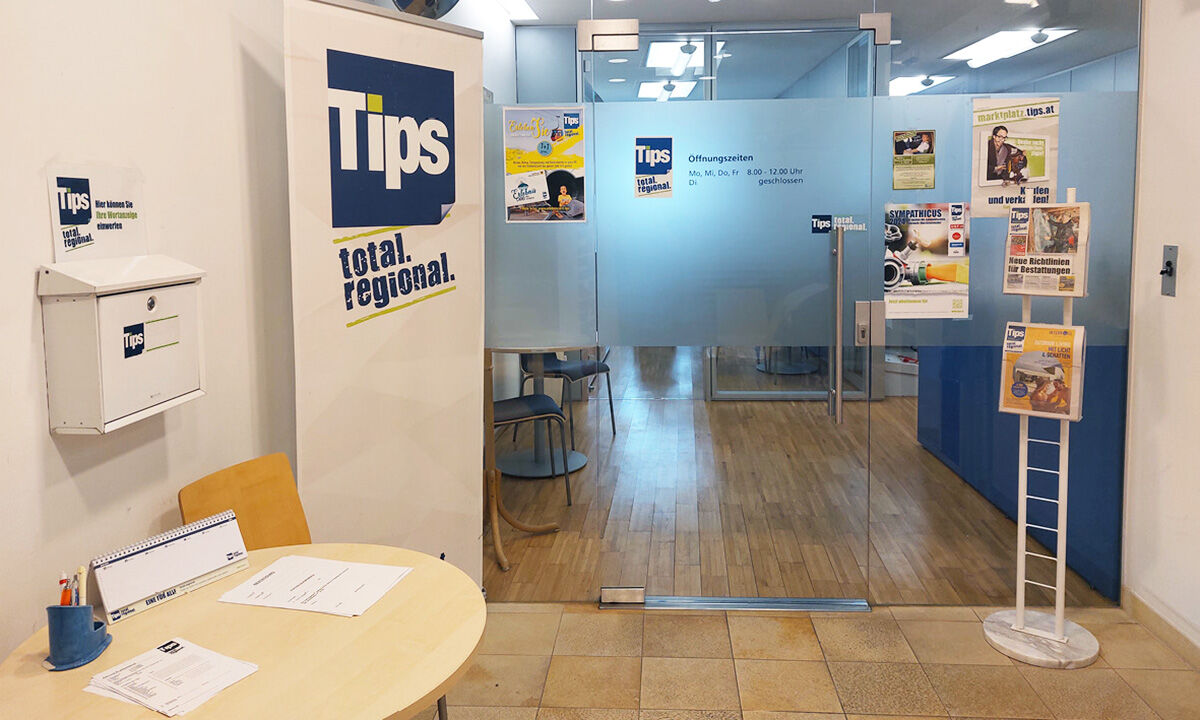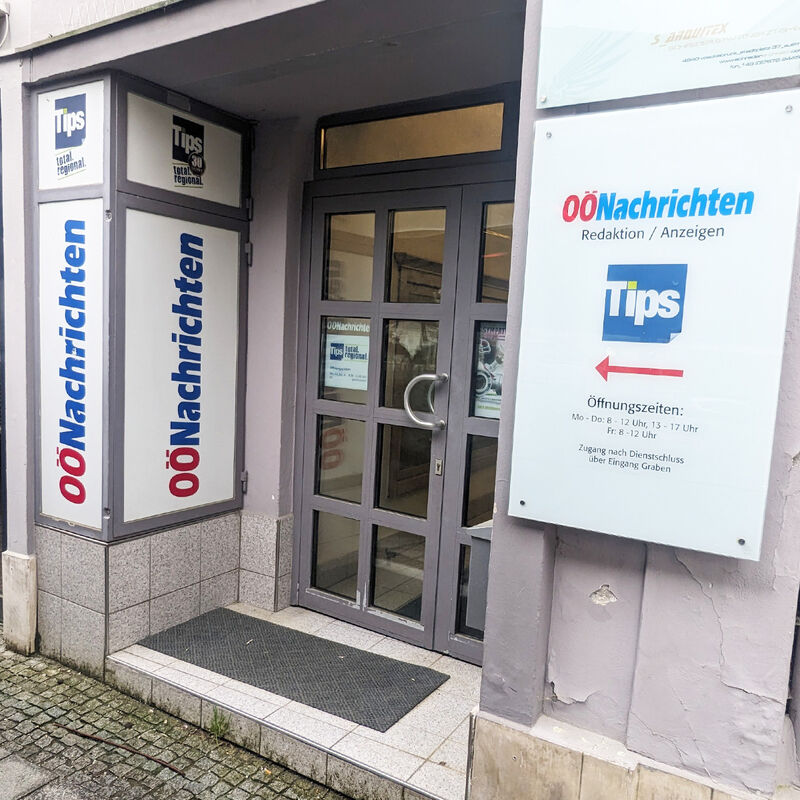 Die Geschäftsstelle befindet sich direkt am Vöcklabrucker Stadtplatz neben dem Café Licht&i. Tips befindet sich im 1. Stock, und ist nicht barriere frei erreichbar.