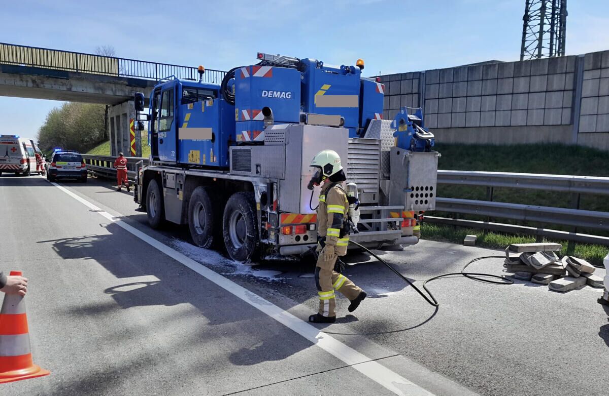 ST. GEORGEN/YBBSFELDE. Aufgrund eines Motorbrandes eines dreiachsigen LKWs mit Kran wurden die Feuerwehren St. Georgen/Ybbsfelde und Blindenmarkt zu einem Löscheinsatz auf der Westautobahn alarmiert.