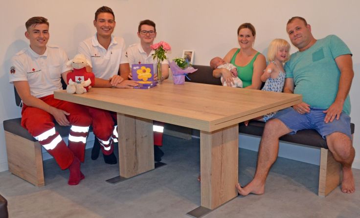 Rotkreuz-Sanitäter als GeburtshelferDie Gebursthelfer Elias Zach, Mathias Kammerhofer und Tobias Steinlesberger mit Ma