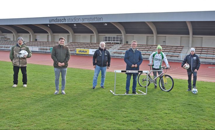 Über die neue Anlage freuen sich auch die Obmänner des LC Umdasch Amstetten, des RATS Amstetten, des SKU Amstetten und der Amstetten Thunder.