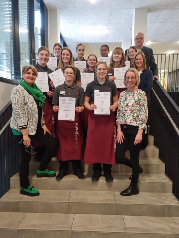 Die Zertifikatsprüfung umfasste einen theoretischen Teil, die Erstellung eines Portfolios zu einer Torte, die praktische Prüfung sowie das Fachgespräch inklusive der Präsentation des Schaustücks vor der Prüfungskommission. Nach der Übergabe der Zertifikate durften die Schülerinnen und Eltern die Torten verkosten und gemeinsam auf die tollen Erfolge anstoßen.