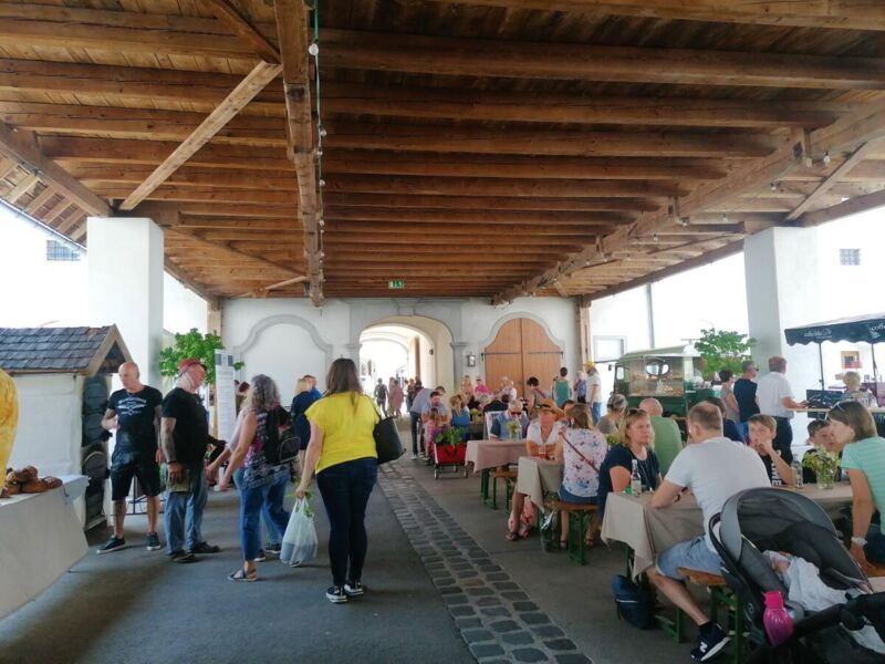 In den Innenhöfen des Meierhofes laden die Produzenten kulinarischer Köstlichkeiten zum Verkosten und Genießen. Ausreichend Sitzgelegenheiten im teilüberdachten Innenhof bieten die Möglichkeit zur genussvollen Stärkung bestens geschützt vor Sonne und Regen.