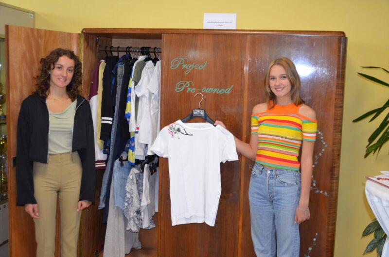 AMSTETTEN. Ab sofort ist das Amstettner Ostarrichi-Gymnasium um ein Möbelstück reicher - nämlich um einen Kleiderkasten im Retro-Schick, der sich im Garderobenbereich der Schule befindet. Schüler können nicht mehr benötigte Kleidungsstücke in den Schrank hängen oder sich mit Second-Hand-Mode ausstatten. Dies alles ist das Resultat des „Project Pre-owned“, einem Projekt der Schülerinnen und Schwestern Lara und Jana Leeb, für das sie den ersten Platz beim Schulhauskulturpreis 2023 erhalten haben.