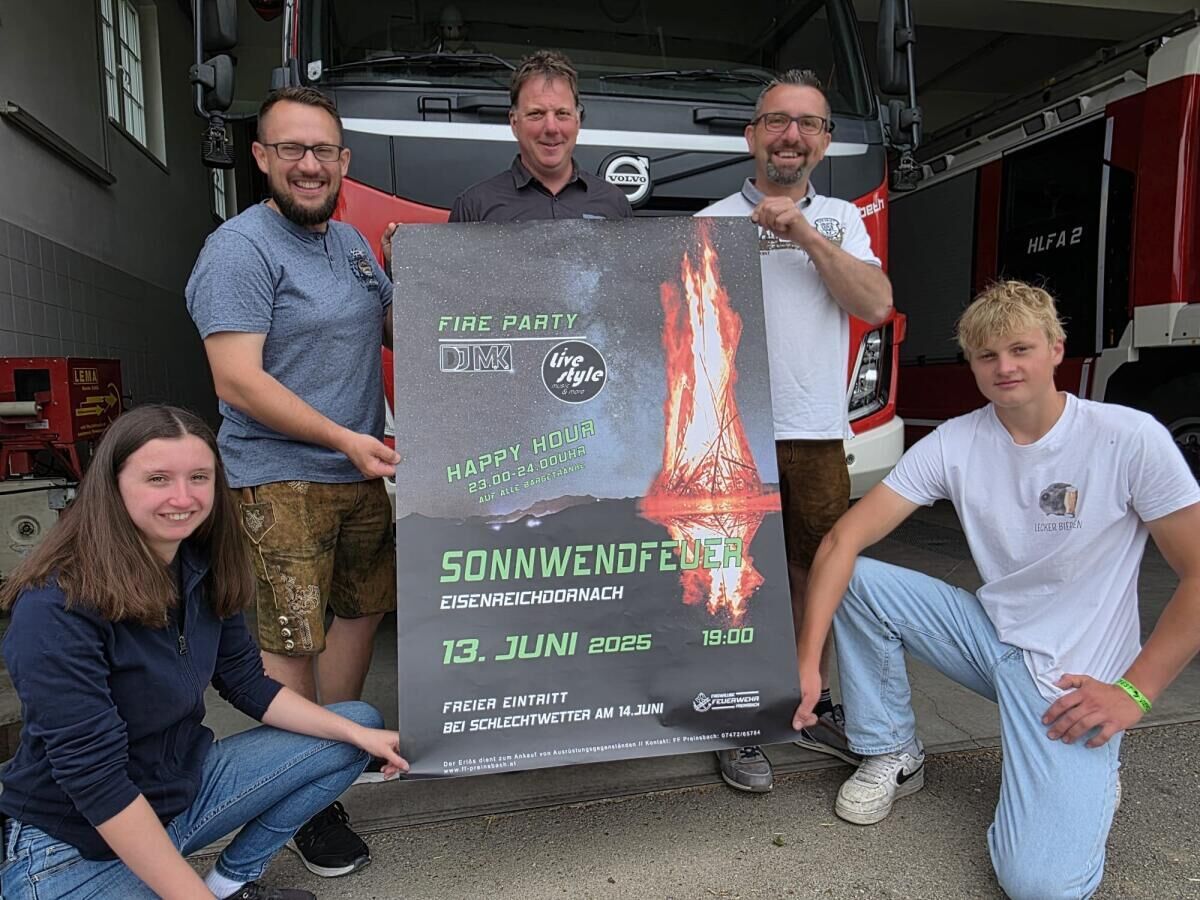 AMSTETTEN. Die Freiwillige Feuerwehr Preinsbach lädt am Freitag, 13. Juni 2025, zum traditionellen Sonnwendfeuer. Beginn ist um 19 Uhr. Die Preinsbacher Florianis präsentieren zwei Musikacts: Zunächst spielt die Band „Lifestyle music and more“, danach sorgt DJ MK für Partystimmung.