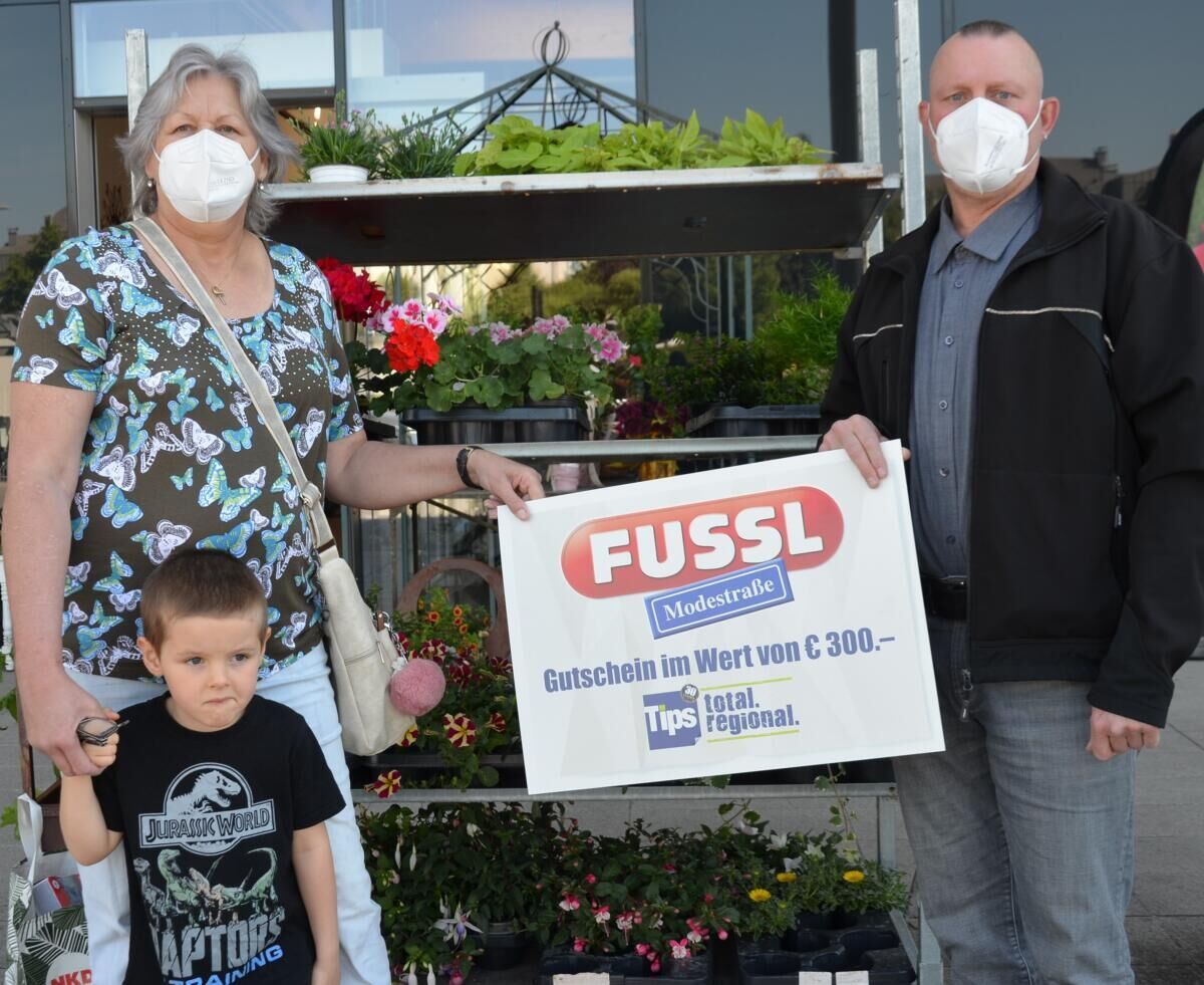 HAUSMENING. Gemeinsam mit ihrem Enkerl Arnold (4) erledigte Ingrid Rimser aus Grein gerade Einkäufe, als sie vom Tips-Glücksengerl angesprochen wurde. Kurze Zeit später konnte sie sich über 300 Euro Fussl-Gutscheine freuen.