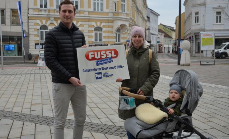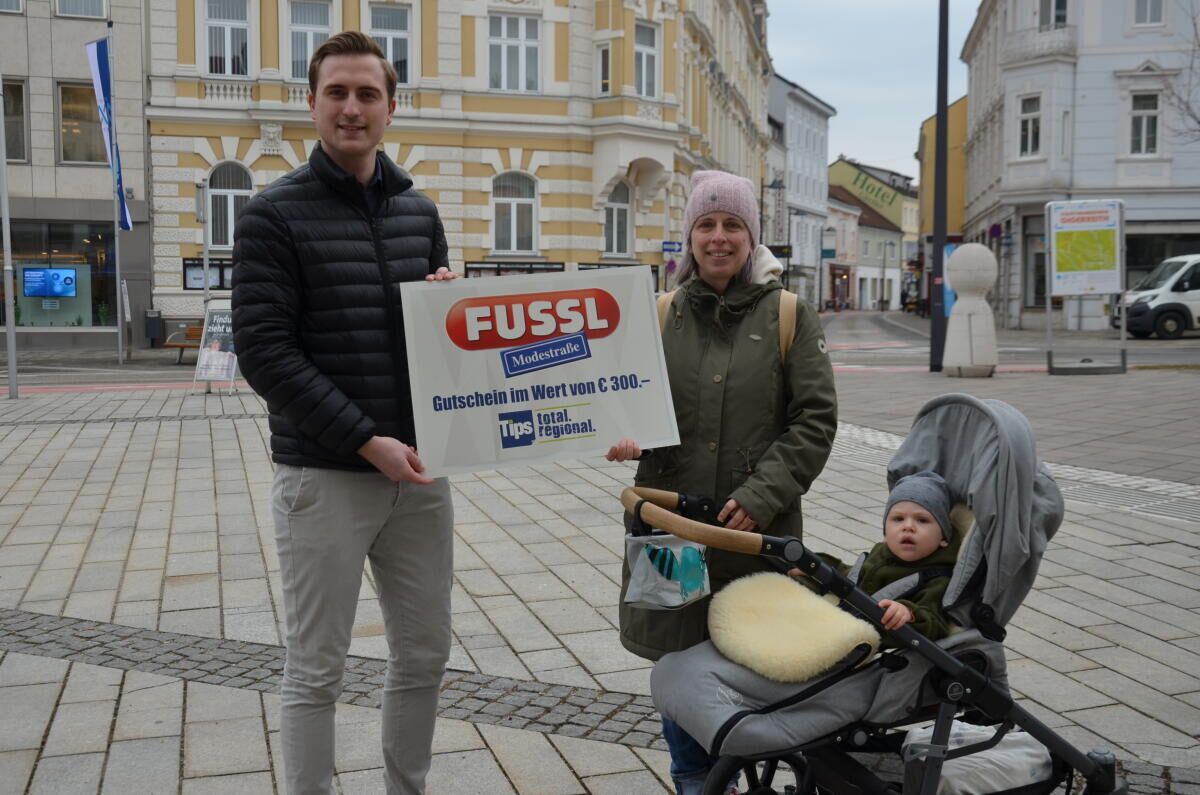 Cordula Ecker war gerade mit ihrem 15 Monate alten Sohn Konstantin im Amstettner Zentrum unterwegs, als sie das Tips-Glücksengerl Timon Wolfram nach ihrer regionalen Lieblingszeitung fragte. Die gebürtige Vorarlbergerin, die vor sieben Jahren ins Mostviertel gekommen ist, antwortete prompt mit „Tips!“ und erhielt im Gegenzug 300-Euro-Gutscheine für die Fussl-Modestraße. „Das freut mich sehr! Ich habe zuletzt als Kind beim Malwettbewerb gewonnen ... Nach der Schwangerschaft ist es jetzt an der Zeit, ein neues Outfit zu kaufen“, so die glückliche Gewinnerin.Insgesamt verschenkt Tips bei der Aktion Gutscheine im Wert von 32.700 Euro im gesamten Erscheinungsgebiet. Wo die Glücksengerl das nächste Mal unterwegs sind, ist geheim. Aber es gibt einen kleinen Hinweis auf www.tips.at. Also die Augen offen halten und die richtige Antwort geben.