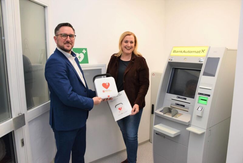 AMSTETTEN. Beim neuen Bankomaten in Greinsfurth wurde ein Defibrillator installiert.