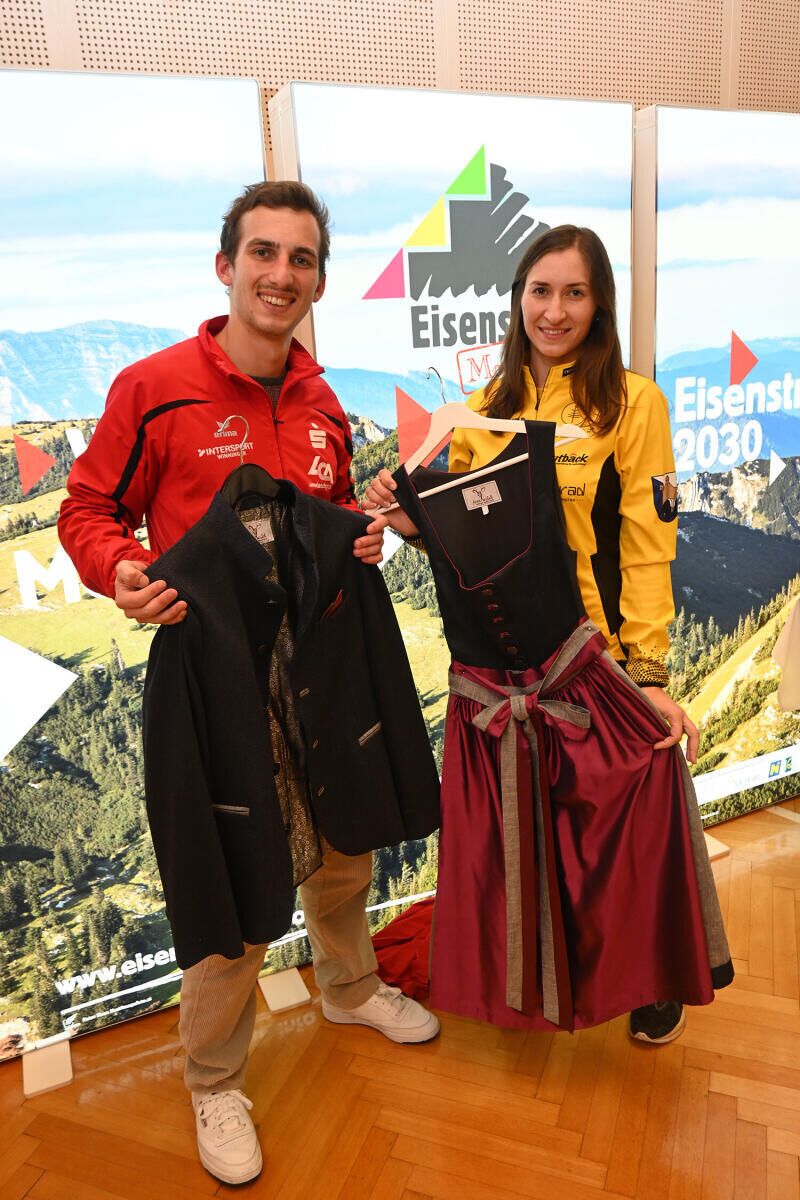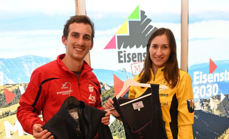 Auf die beiden Gesamtsieger wartete ein besonderer Preis: Sie erhielten ein Eisenstraße-Sakko und ein Eisenstraße-Dirndl von Freiwild Design aus Waidhofen an der Ybbs. Herbert Eibl ließ Jan Ratay bei der Siegerehrung gleich ins „Gewinner-Sakko“ schlüpfen.