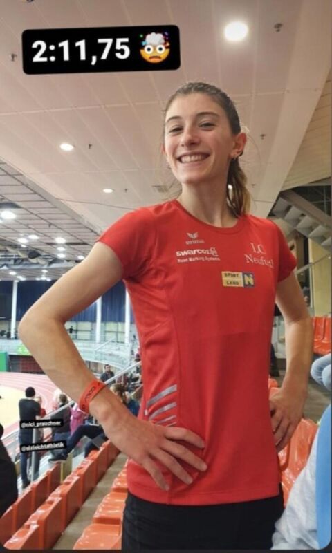 Prauchner lief die 800 Meter in einer Zeit von 2:11,75 Minuten und übertraf ihre erst vor wenigen Tagen aufgestellte Bestzeit nochmal um drei Sekunden.