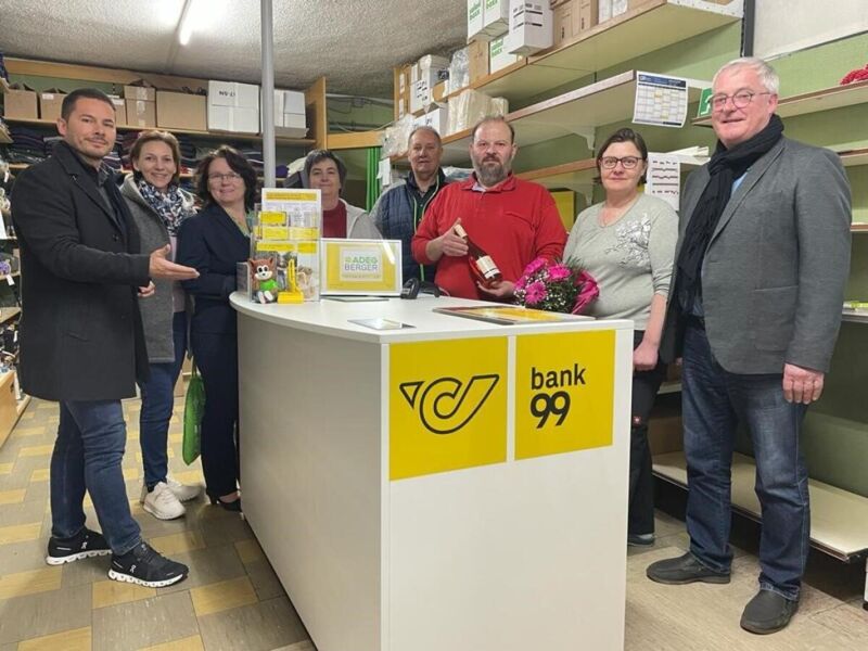 Der Postschalter wird künftig zu den regulären Öffnungszeiten des beliebten Nahversorgers besetzt sein. Einige Vertreter aus der Gemeinde mit VP-Bürgermeister Franz Wurzer und aus dem Ortsentwicklungsverein mit Obfrau Martina Weiß statteten der Unternehmerfamilie Berger sowie ihren Mitarbeitern mit Blumen und Sekt einen Besuch in der neuen Postfiliale ab, um zum Start dieses Geschäftszweigs zu gratulieren.
