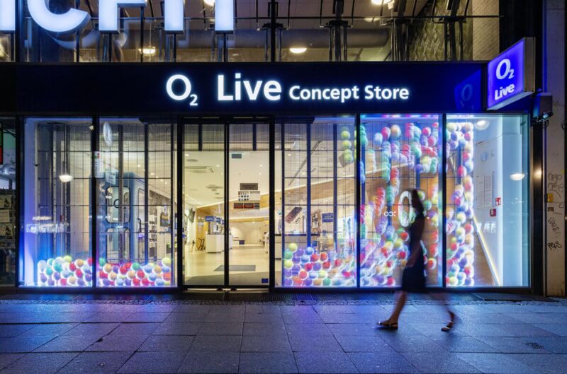 Dank Bewegungssensoren reagiert der Content auf Passanten und schafft so eine interaktive und spielerische Begegnung mit der Marke O2.